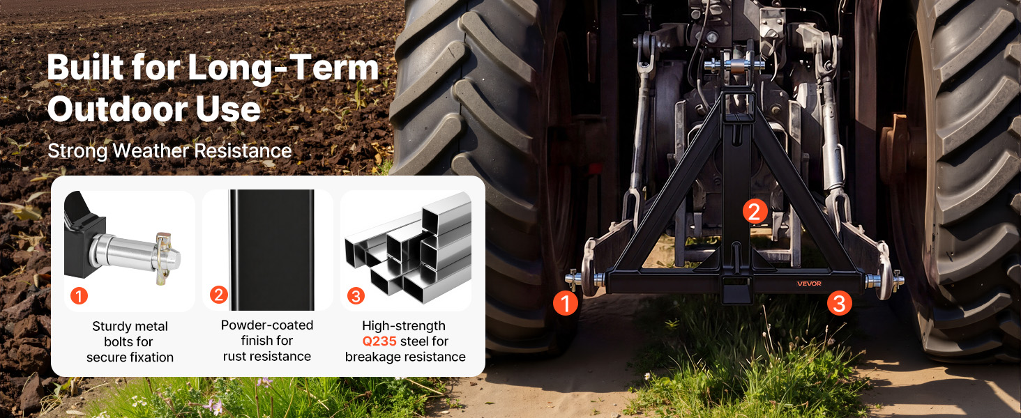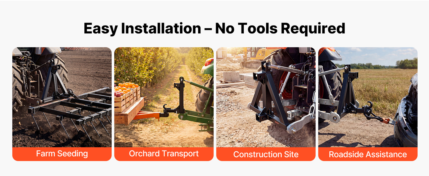 Tento 3-bodový ťahač prívesov sa dá použiť na ťahanie prívesov, pluhov a iných poľnohospodárskych strojov, čo je ideálne pre použitie na dvoroch, poľnohospodárskej pôde, v záhradách a na staveniskách.