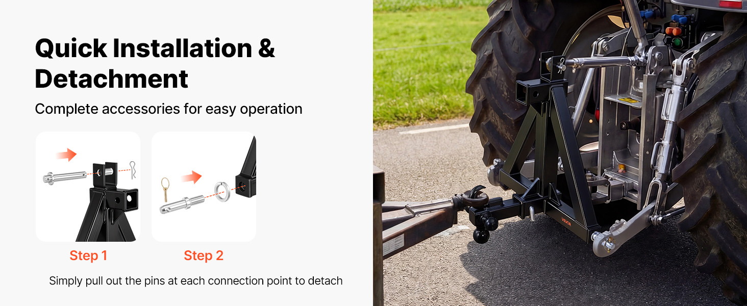 Nie je potrebné vŕtanie ani zložité postupy. Táto 3-bodová ťažná tyč sa dá bezpečne namontovať pomocou skrutiek. Umožňuje jednoduchú montáž a demontáž, čím je celý proces jednoduchý a bez námahy.
