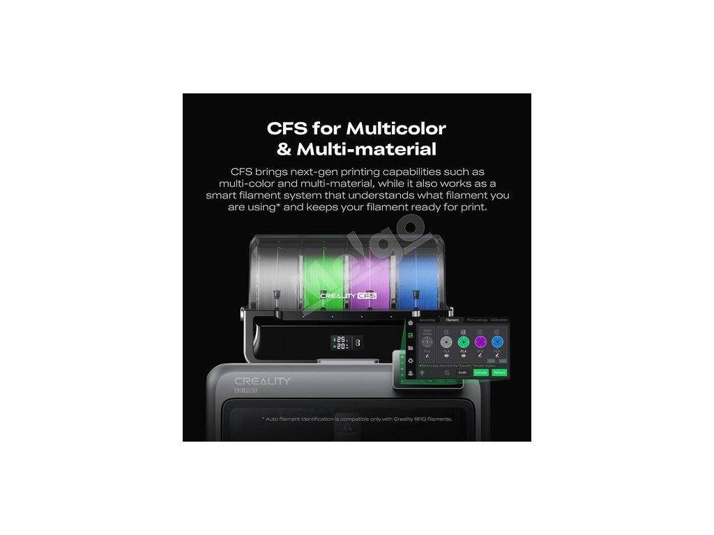 - Chytrý, zjednodušený pracovný postup: Automatická manipulácia s vláknami prostredníctvom systému CFS (RFID-enabled Filament System) vrátane detekcie zamotania a bezproblémového prepínania relé.