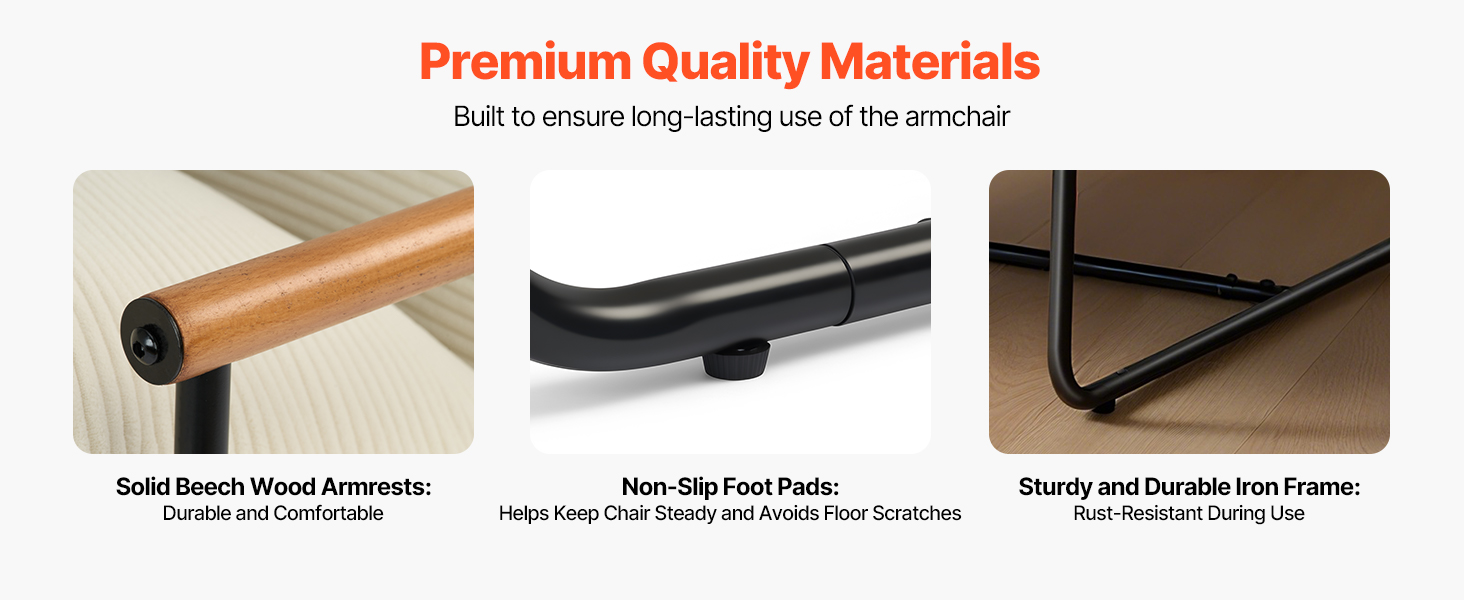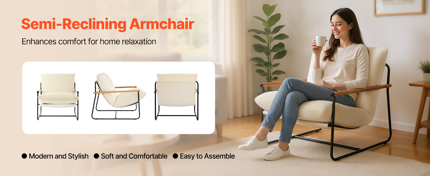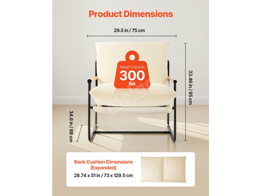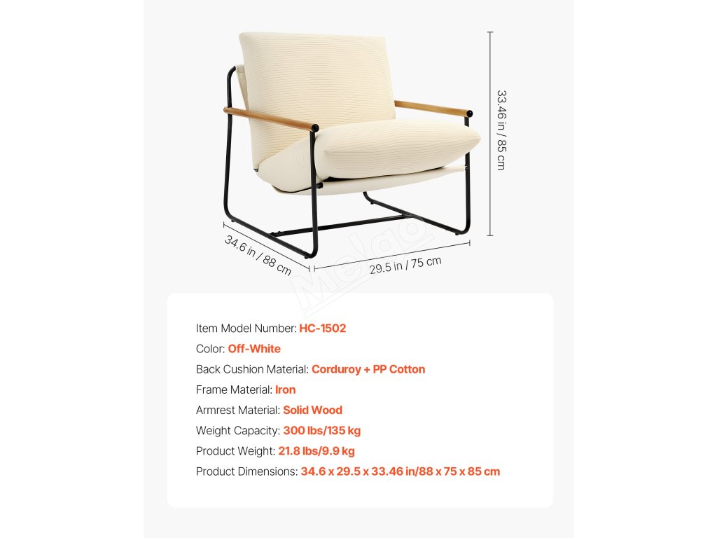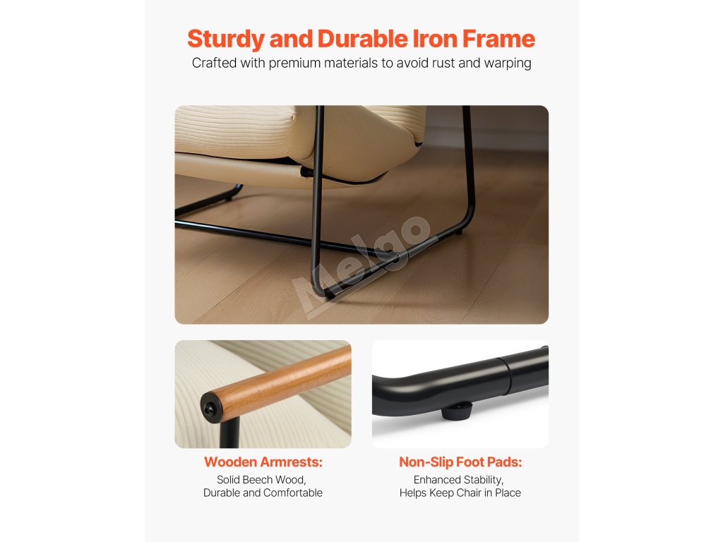 Sedadlo a operadlo vyplnené prvotriednou penou s vysokou hustotou a s ergonomickým pololežiacim dizajnom sa prispôsobujú prirodzeným krivkám tela a poskytujú pevnú bedrovú oporu. Toto akcentové kreslo čalúnené mäkkým, hladkým manšestrom poskytuje útulný dotyk a štýlový vzhľad pre každý moderný priestor.