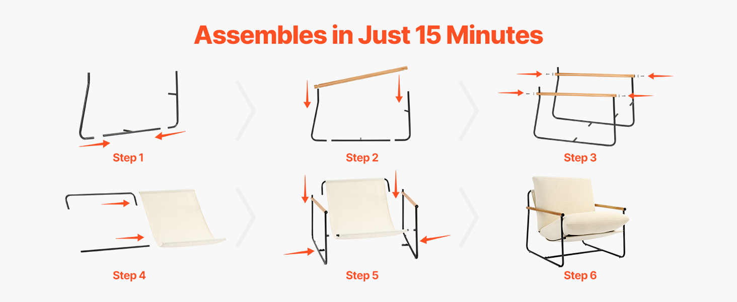 Naša útulná akcentová stolička sa dodáva so všetkým potrebným hardvérom a jasnými pokynmi na rýchle nastavenie. Ľahko ju zostavíte len za 15 až 30 minút bez toho, aby ste museli vynaložiť ďalšie úsilie.