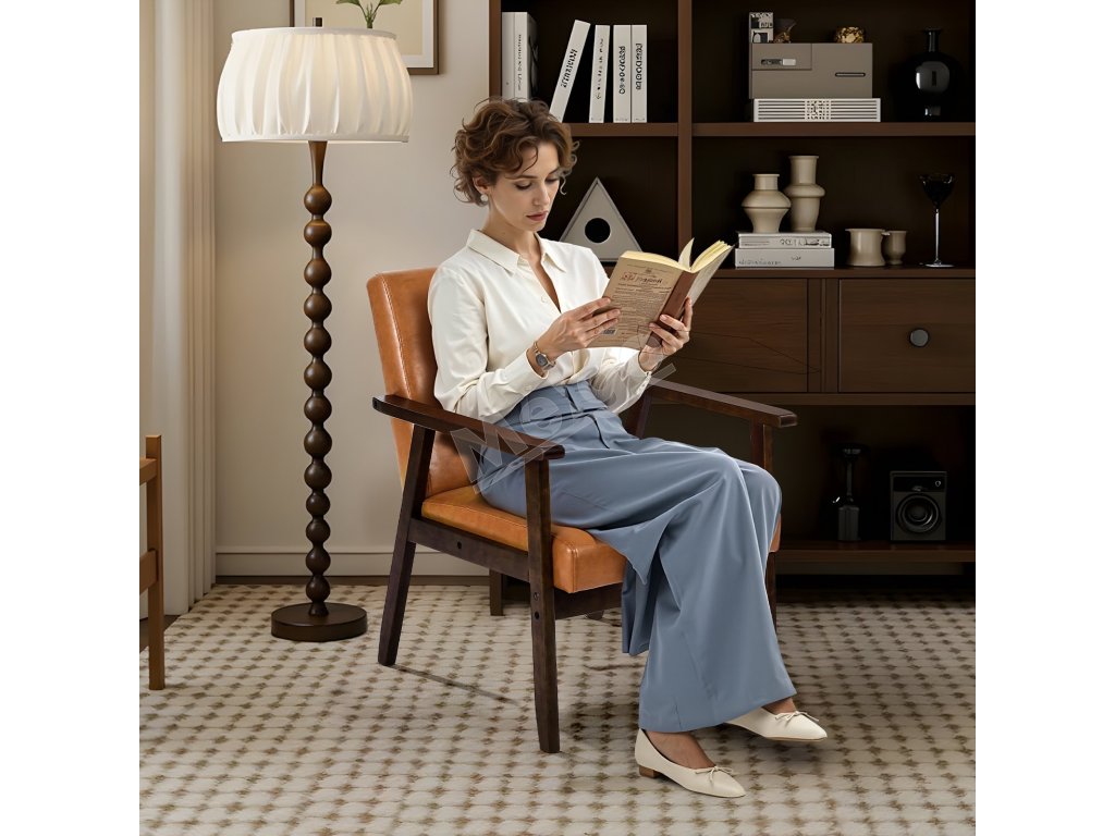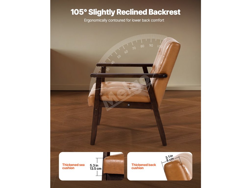 Táto drevená akcentová stolička kombinuje klasický moderný štýl polovice storočia s kvalitným rámom z masívneho dreva, ktorý zaručuje robustnosť a odolnosť. Uhol sklonu operadla 105° a pena s vysokou hustotou poskytujú výnimočné pohodlie, vďaka čomu je ideálnou voľbou do domácich priestorov.
