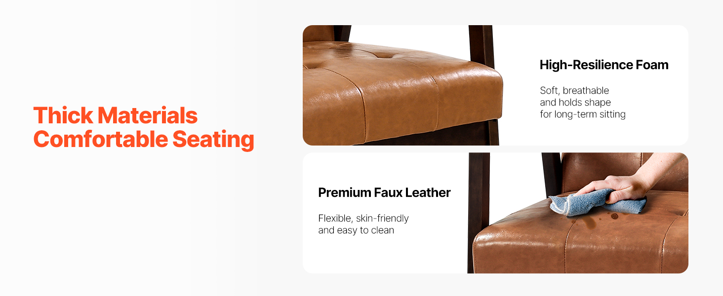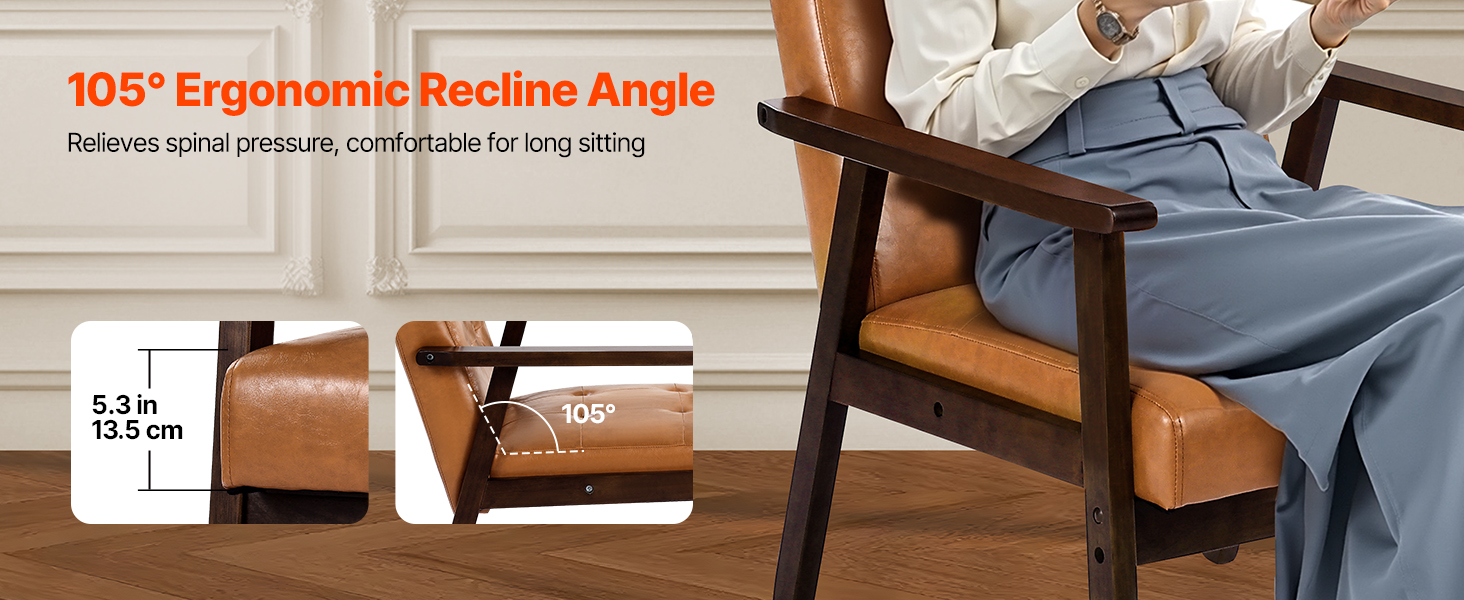 Táto drevená akcentová stolička má uhol operadla 105° a vysokohustotnú penu, ktorá poskytuje vynikajúcu oporu chrbtice a pohodlie. Zhrubnutý, rozšírený vankúš ponúka extra priestor, ideálny na sedenie s prekríženými nohami alebo na leňošenie.