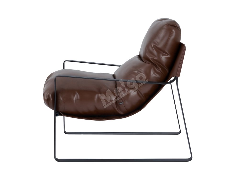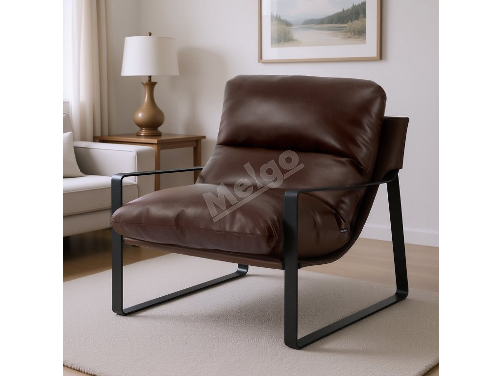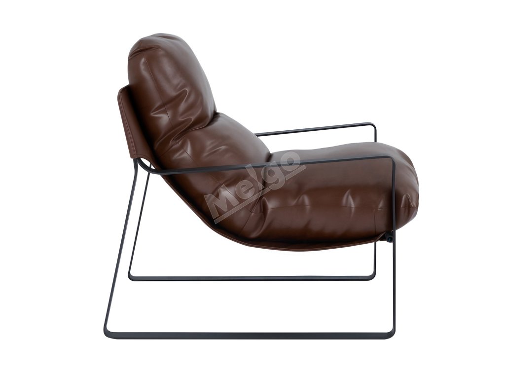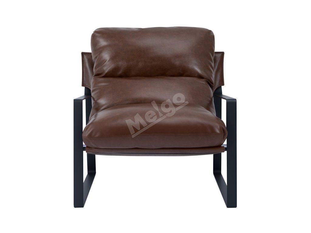 Kreslo z pu kože, penový sedák, kovový rám, odnímateľný vankúš, hnedé