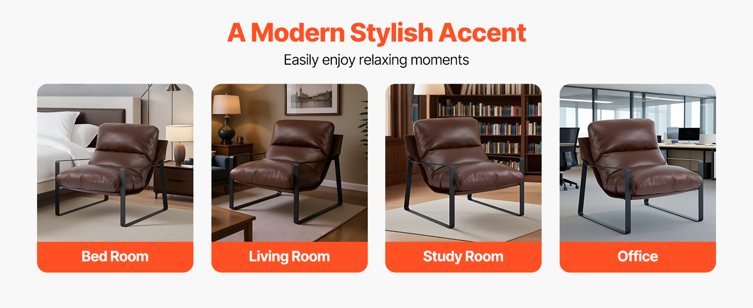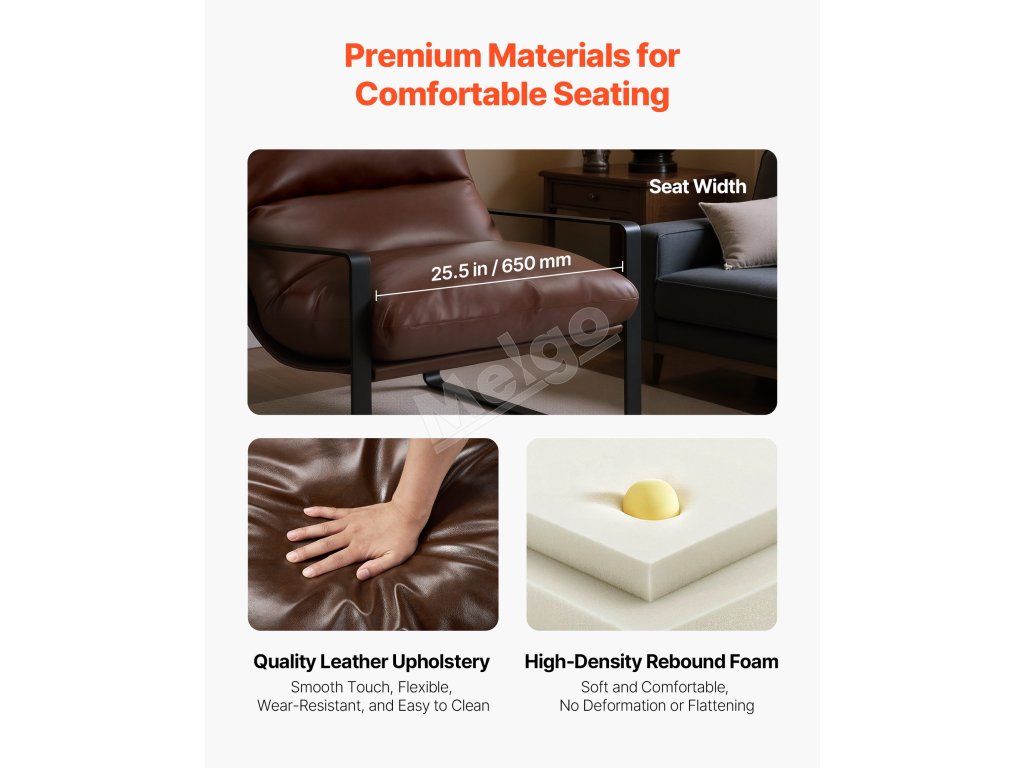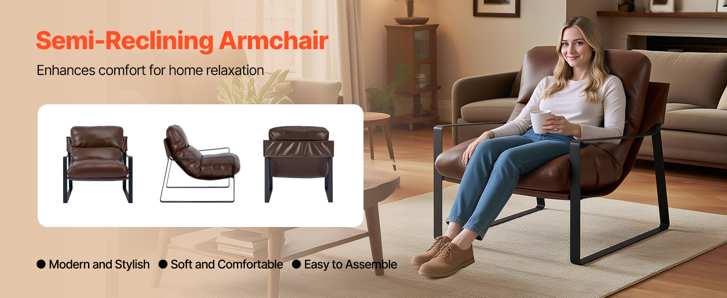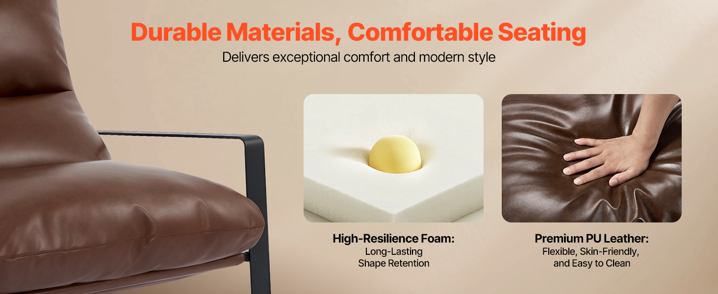 Sedadlo a operadlo vyplnené prvotriednou penou s vysokou hustotou a s ergonomickým pololežiacim dizajnom sa prispôsobujú prirodzeným krivkám tela a poskytujú pevnú bedrovú oporu. Toto akcentové kreslo čalúnené mäkkou, hladkou PU kožou poskytuje útulný dotyk a štýlový vzhľad pre každý moderný priestor.