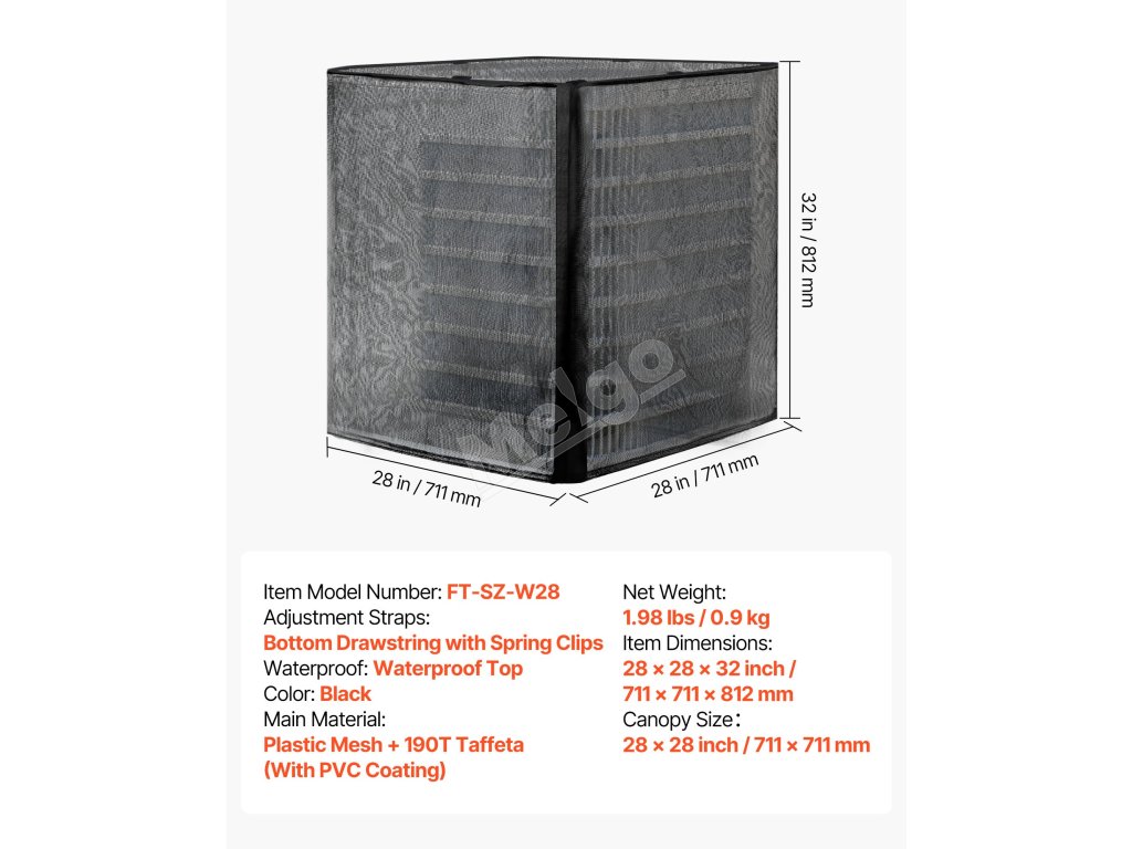 Kryt klimatizačnej jednotky 711×711×812 mm, nepremokavý, dvojvrstvový