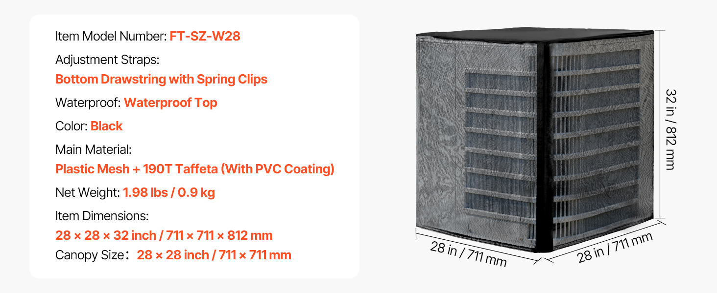 Univerzálna konštrukcia je vhodná pre rôzne klimatizačné jednotky a poskytuje úplnú ochranu. Ľahko sa inštaluje, chráni pred poškodením vplyvom počasia a predlžuje životnosť zariadenia.