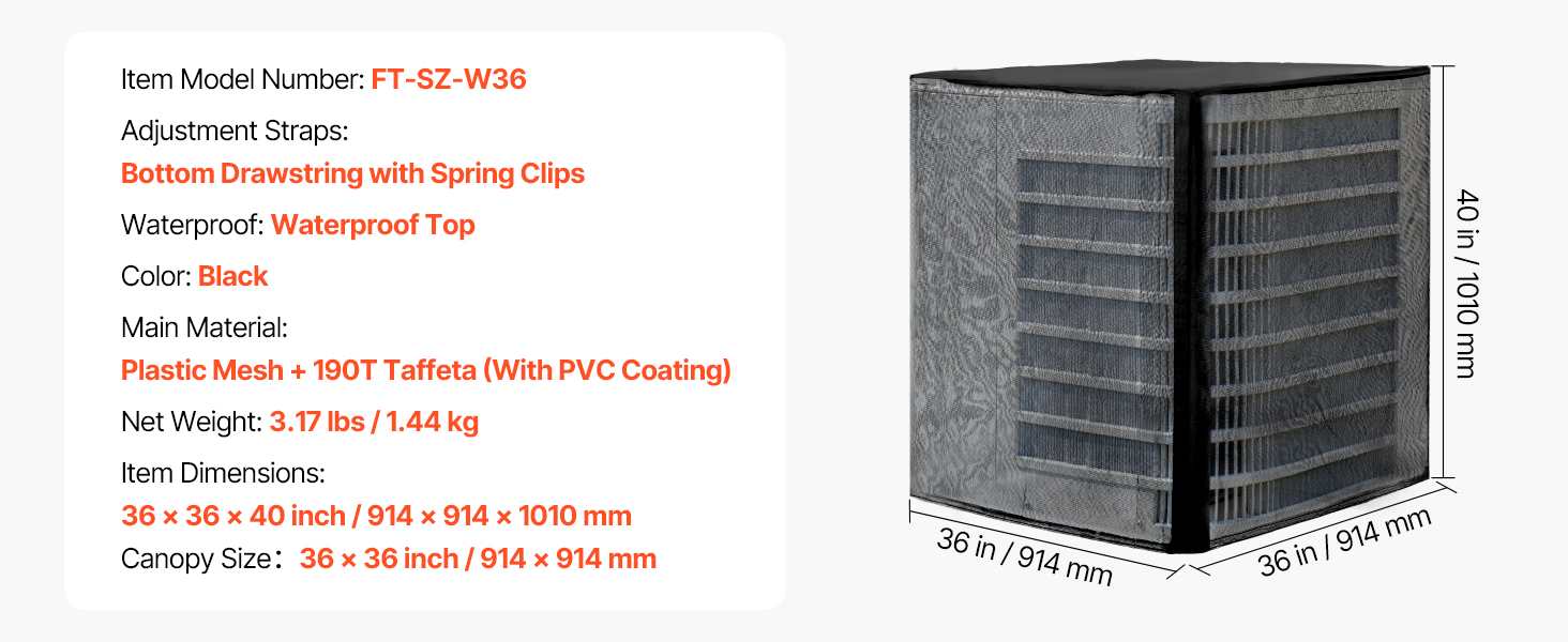 | Rozmery položky | 36 x 36 x 40 palcov / 914 x 914 x 1010 mm |