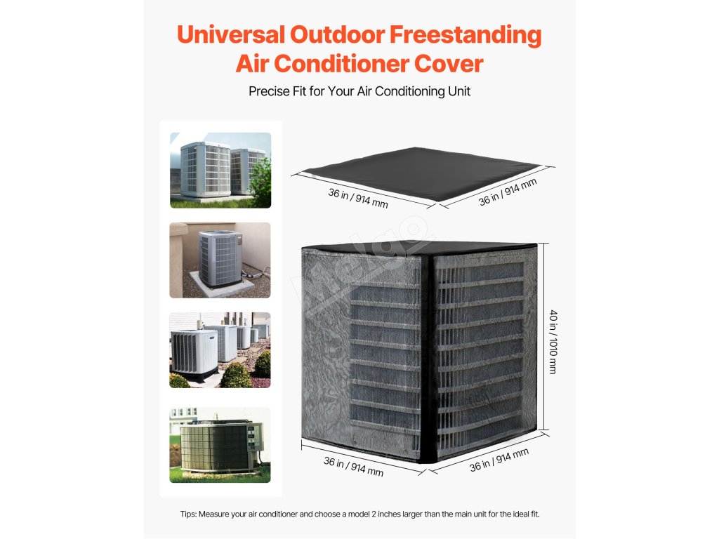 Kompatibilný s rôznymi vonkajšími klimatizačnými jednotkami. Správne uchytenie zabezpečíte výberom modelu o 2 palce väčšieho, ako je vaša klimatizačná jednotka. Starostlivo merajte, aby ste sa vyhli problémom s inštaláciou.