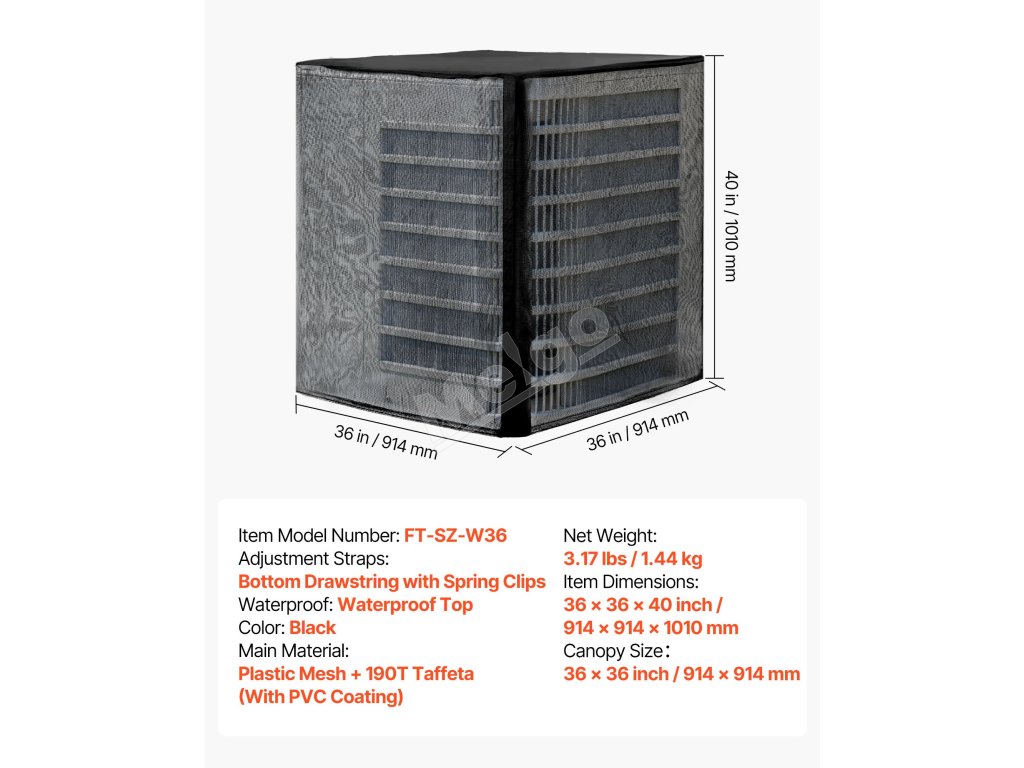 | Rozmery položky | 36 x 36 x 40 palcov / 914 x 914 x 1010 mm |