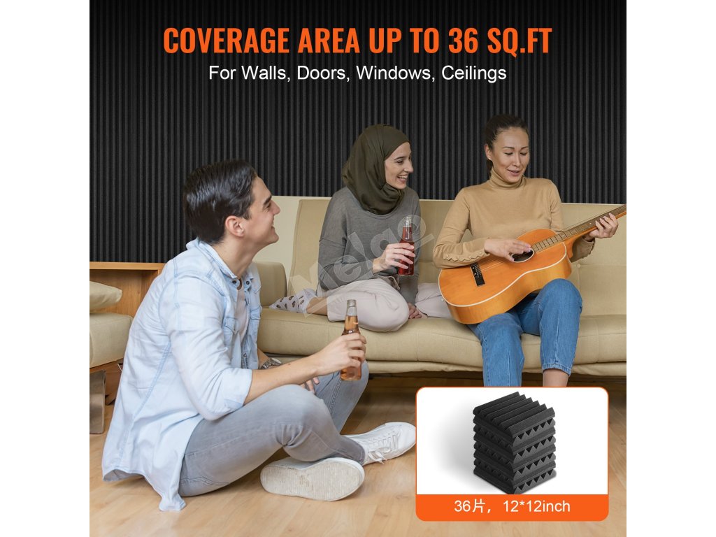 Akustické penové panely 36 ks 12×12×2 inches, vysoká hustota nehorľavé