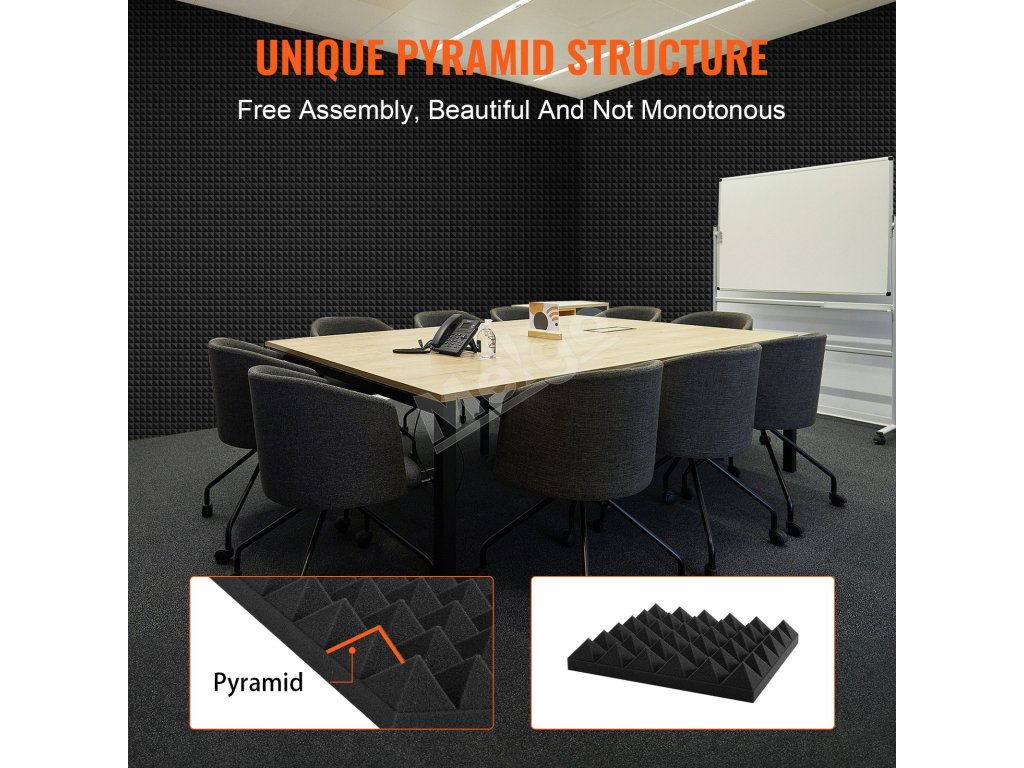 K dispozícii sú jedinečné tvary klinu, pyramídy a vajíčka, ktoré si môžete vybrať podľa svojho priestoru. Textúrovaný povrch zväčšuje plochu peny, čím účinne pohlcuje zvukové vlny na lepšiu zvukovú izoláciu.