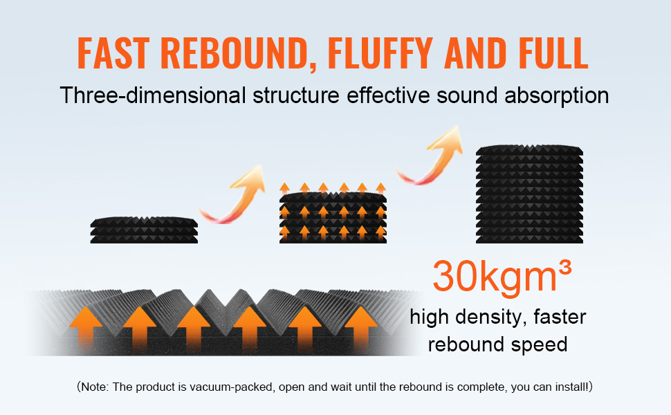 Táto akustická polyuretánová penová doska znižuje zvukové odrazy a ozvenu, čím zlepšuje akustiku miestnosti. S vysokou hustotou na účinnú absorpciu zvuku sa dodáva v tvare klinu, pyramídy a vajíčka a používa sa v nahrávacích štúdiách, domácich kinách a v rôznych iných prostrediach.
