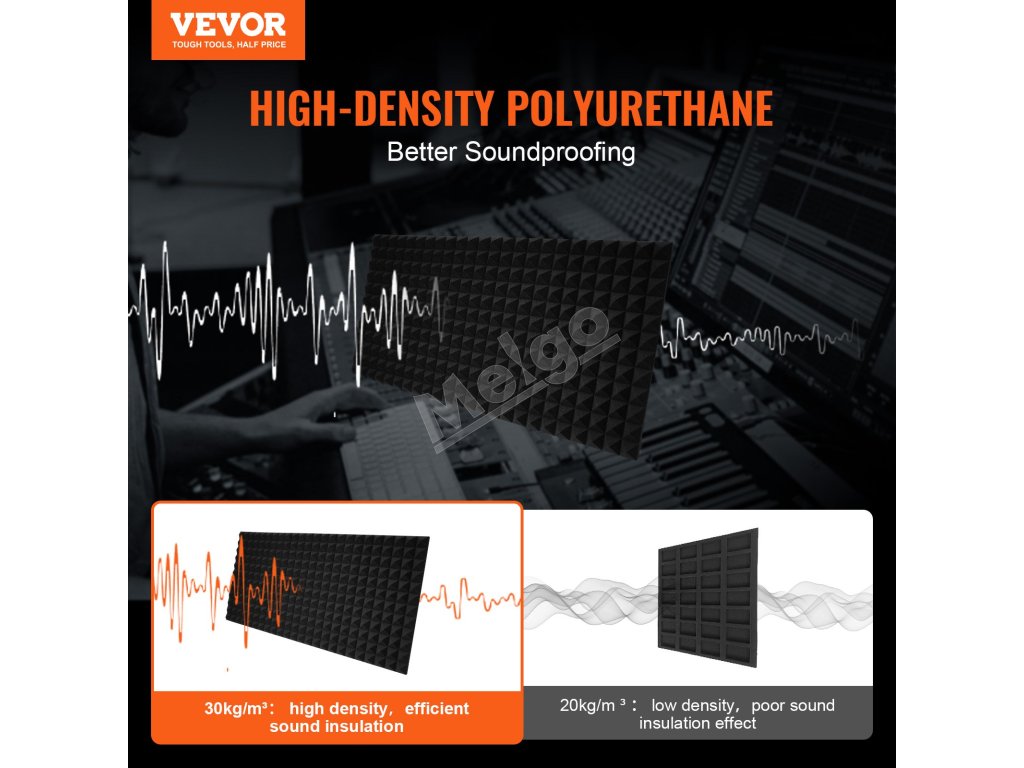 Táto akustická polyuretánová penová doska znižuje zvukové odrazy a ozvenu, čím zlepšuje akustiku miestnosti. S vysokou hustotou na účinnú absorpciu zvuku sa dodáva v tvare klinu, pyramídy a vajíčka a používa sa v nahrávacích štúdiách, domácich kinách a v rôznych iných prostrediach.