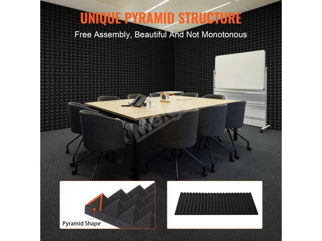 K dispozícii sú jedinečné tvary klinu, pyramídy a vajíčka, ktoré si môžete vybrať podľa svojho priestoru. Textúrovaný povrch zväčšuje plochu peny, čím účinne pohlcuje zvukové vlny na lepšiu zvukovú izoláciu.