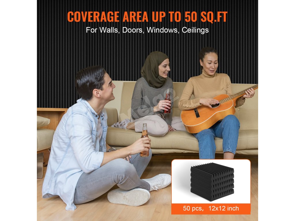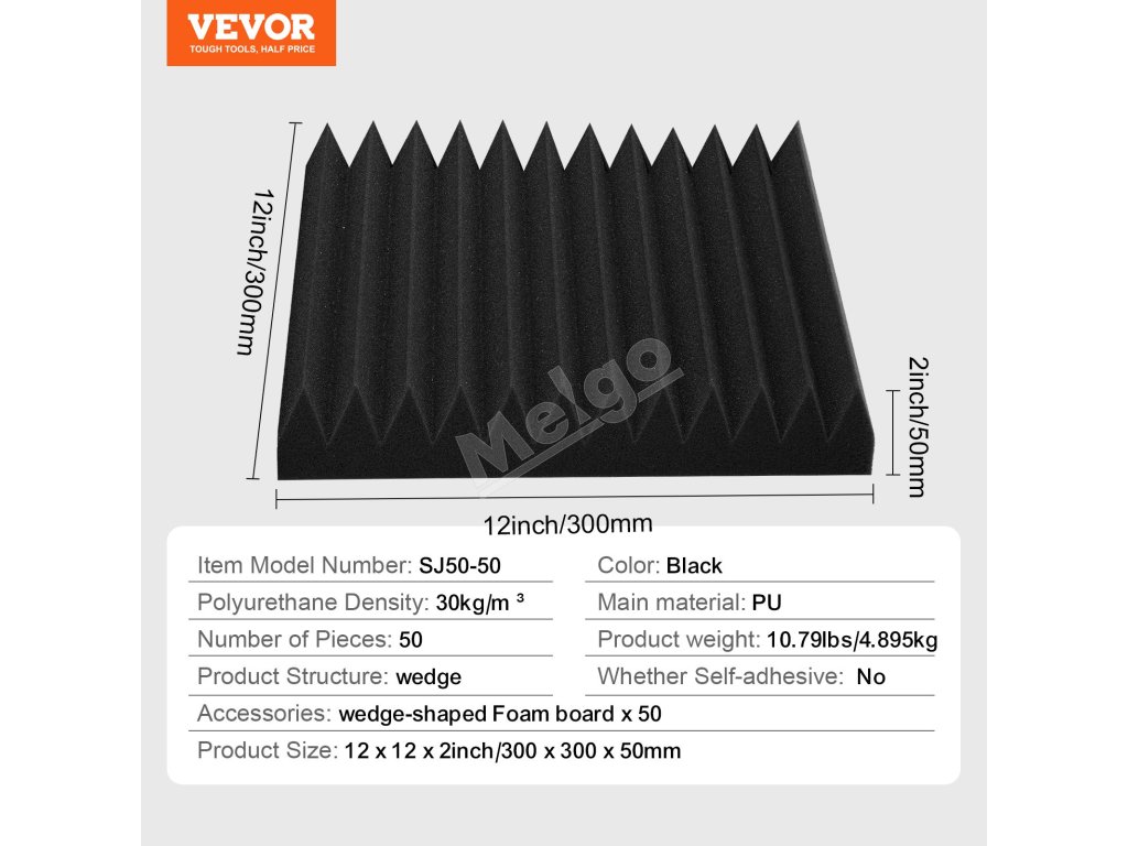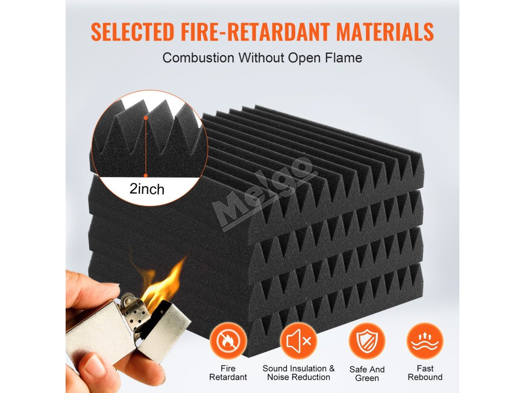 Akustické penové panely 50ks 12×12×2in vysoká hustota čierne nehorľavé