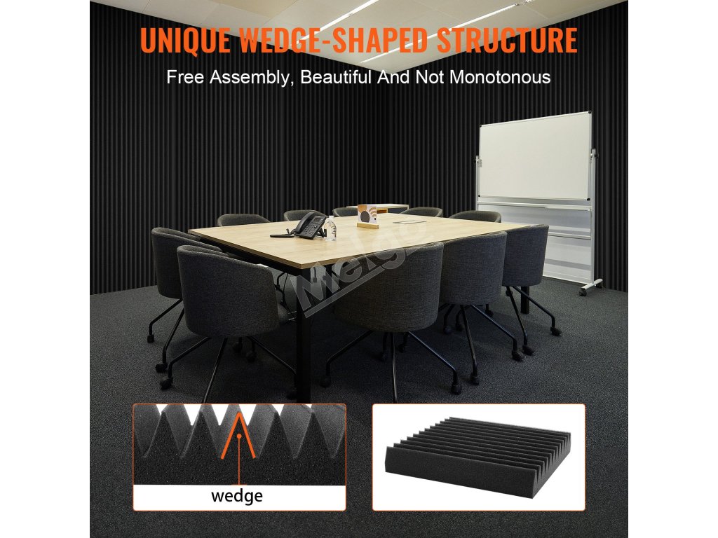 K dispozícii sú jedinečné tvary klinu, pyramídy a vajíčka, ktoré si môžete vybrať podľa svojho priestoru. Textúrovaný povrch zväčšuje plochu peny, čím účinne pohlcuje zvukové vlny na lepšiu zvukovú izoláciu.
