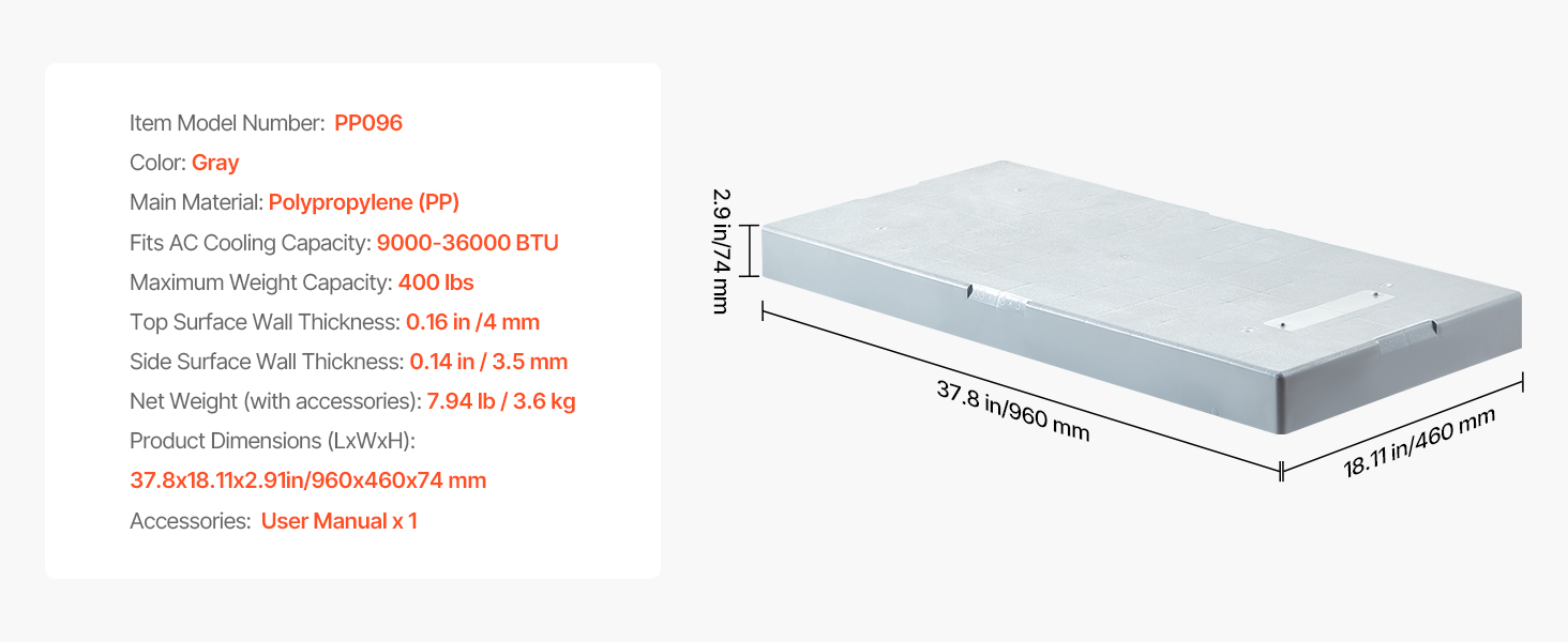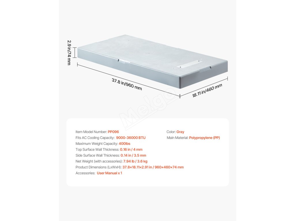 | Rozmery položky (DxŠxV) | 37.8 x 18,11 x 2,91 in / 960 x 460 x 74 mm |