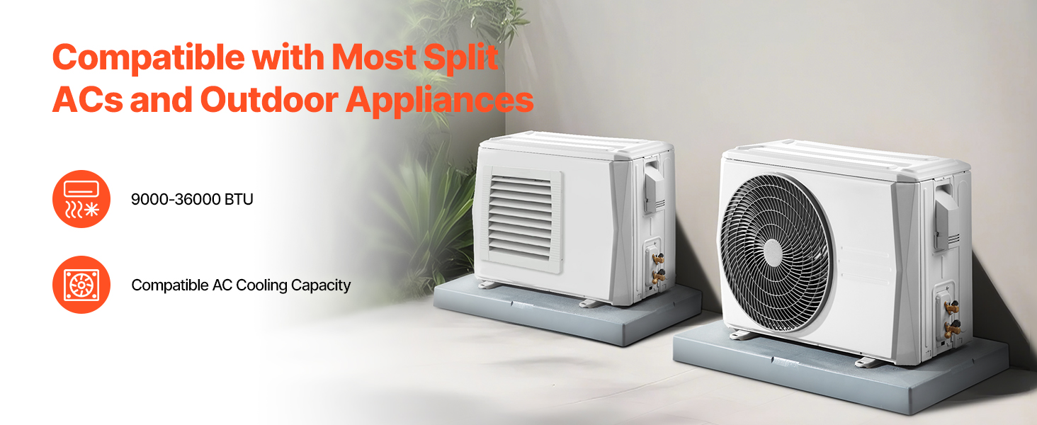 Tento mini split podstavec je kompatibilný s väčšinou mini split klimatizácií, čím zabezpečuje jednoduchú inštaláciu pre rôzne značky a modely zariadení.