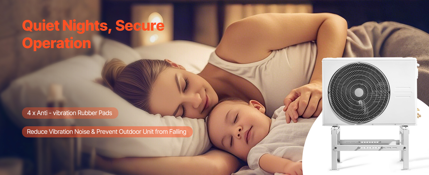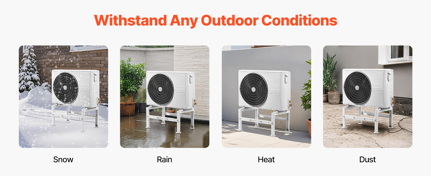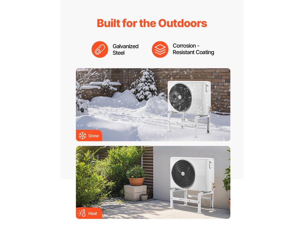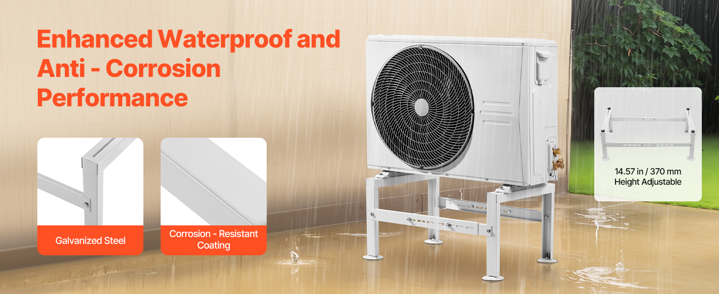 Zdvihnutím vonkajšej jednotky klimatizácie podstavec zabezpečuje, že zostane nad vodou počas extrémneho počasia, čo pomáha predĺžiť životnosť jednotky klimatizácie.