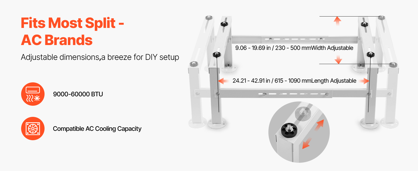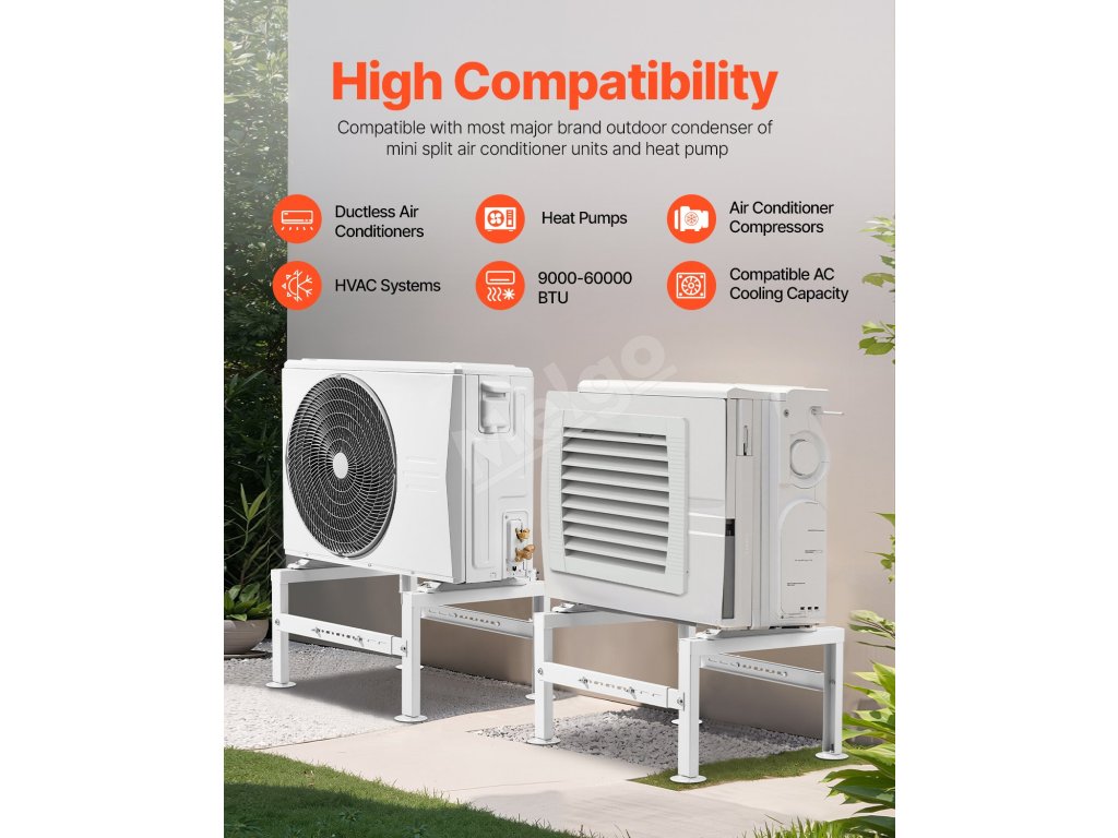 Tento mini split podstavec je kompatibilný s väčšinou mini split klimatizácií, čím zabezpečuje jednoduchú inštaláciu pre rôzne značky a modely zariadení.