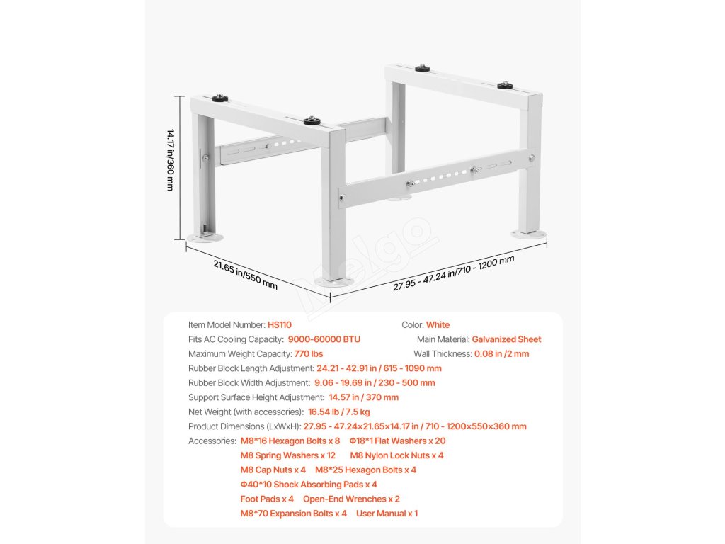 Stojan pre mini split, antivibračný, 9000–60000 BTU, nosnosť 350 kg