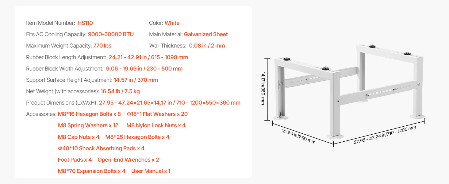 Tento stojan odolný voči poveternostným vplyvom ponúka vynikajúcu stabilitu s funkciami znižujúcimi hluk, zabezpečuje tichú prevádzku a zároveň ľahko manipuluje s ťažkými zariadeniami. Univerzálna konštrukcia je vhodná pre rôzne klimatizačné jednotky, ľahko sa inštaluje a poskytuje spoľahlivý výkon.