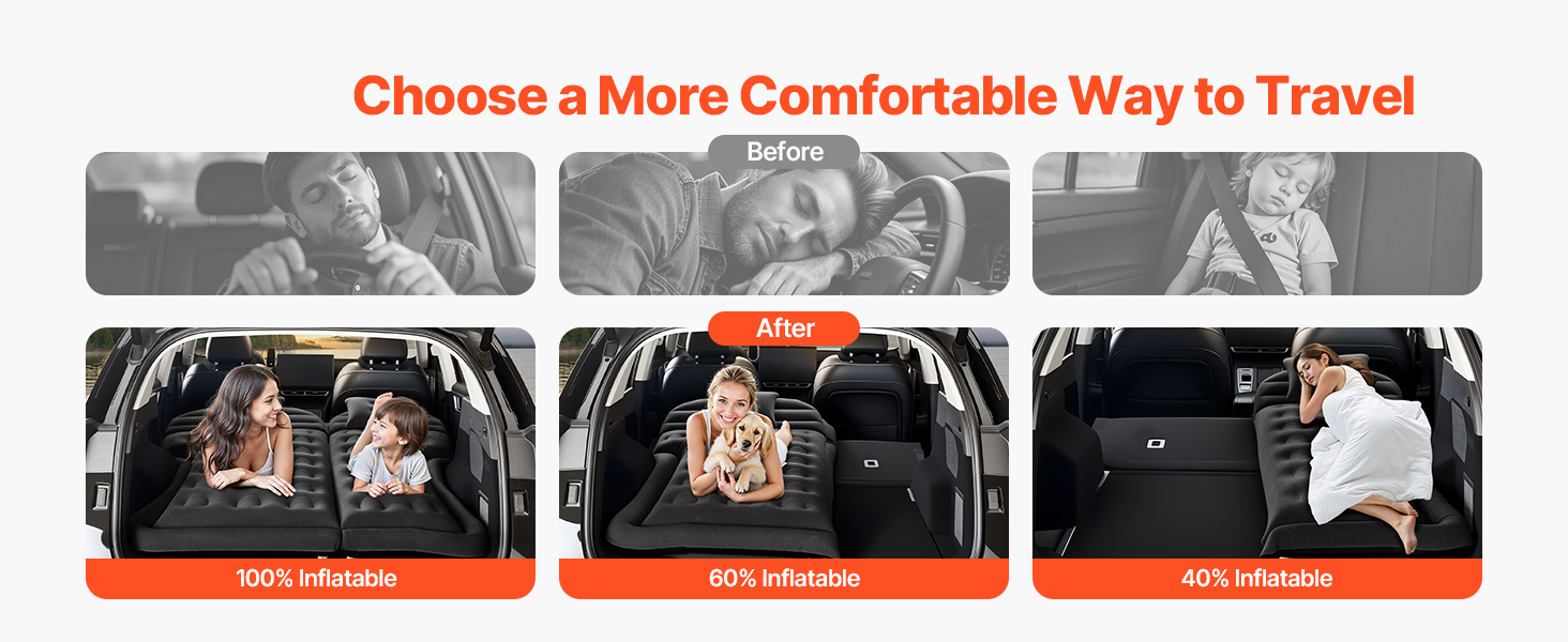Nafukovací kempingový matrac je vhodný pre väčšinu modelov automobilov, SUV, MPV a nákladných vozidiel, takže je ideálnou voľbou na relaxáciu a zábavu počas ciest autom.