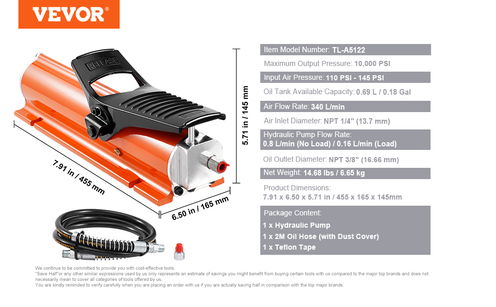 Získajte spoľahlivý výkon s naším vzduchovým hydraulickým čerpadlom 10 000 PSI. Je odolné, má pevný plášť, dlhú olejovú hadicu a z výroby je naplnené hydraulickým olejom (č. 13), má jednoduché ovládanie, základňu odolnú voči nárazom a rýchle nastavenie. Je pripravené na náročné práce, je efektívne a skonštruované tak, aby vydržalo.