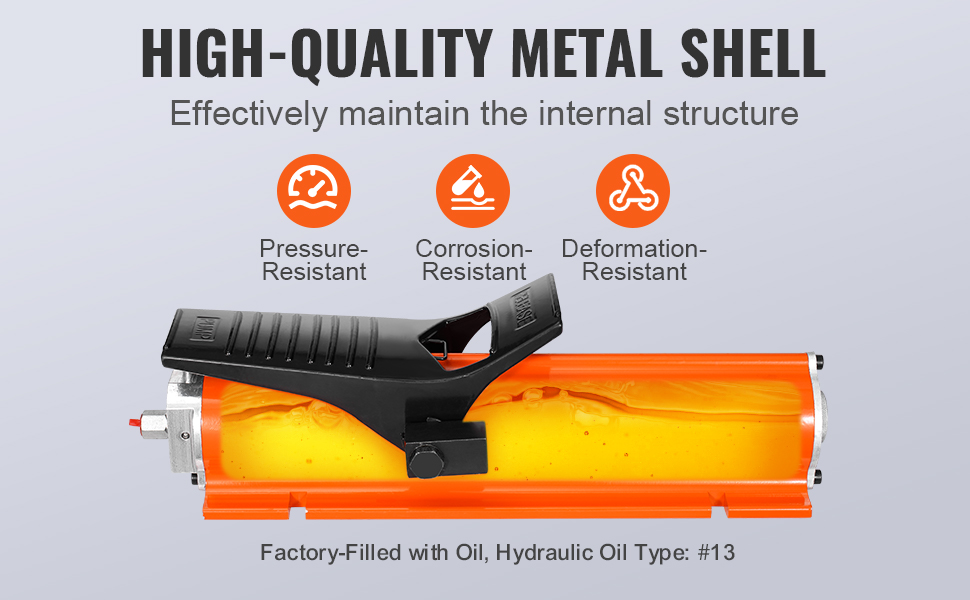 Robustný vonkajší plášť hydraulického nožného čerpadla chráni vnútorné komponenty ako majster. Je odolný voči tlaku, korózii a deformáciám v náročných podmienkach. Z výroby naplnená hydraulickým olejom (č. 13) zabezpečuje účinnú, bezpečnú a odolnú hydraulickú prevádzku.