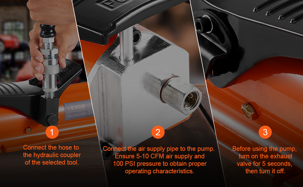 Obsluha tohto pneumatického nožného čerpadla nemôže byť jednoduchšia. Vďaka dvom ovládacím prvkom - "Pump" na spustenie a "Release" na plynulé a presné uvoľnenie spätného toku kvapaliny - budete mať úplnú kontrolu nad hydraulickým systémom s minimálnym úsilím.