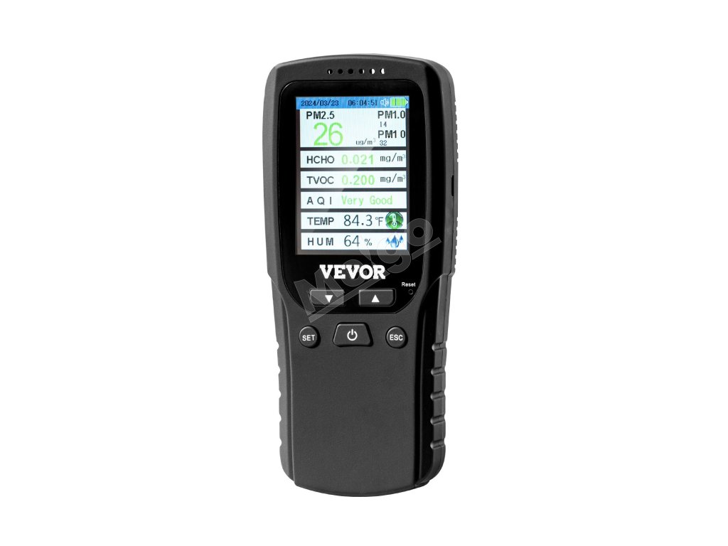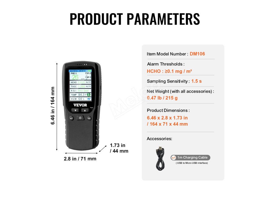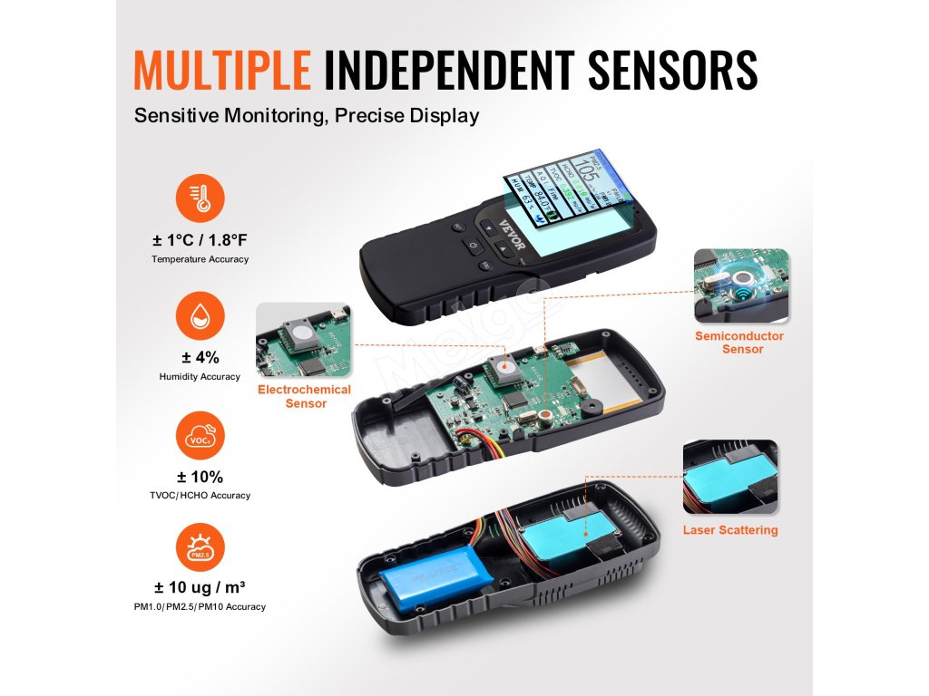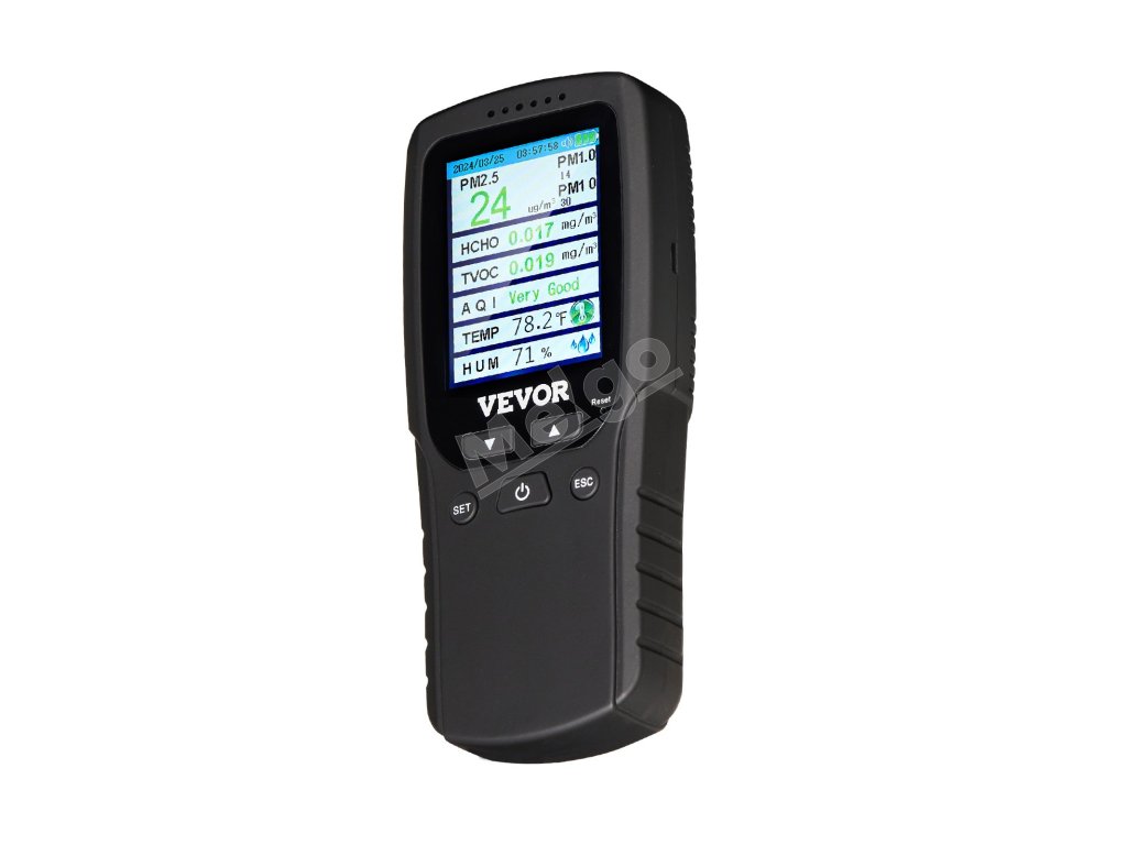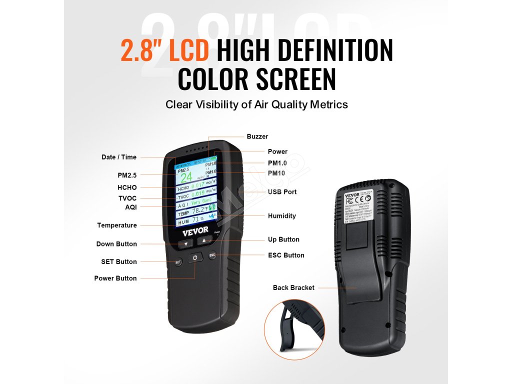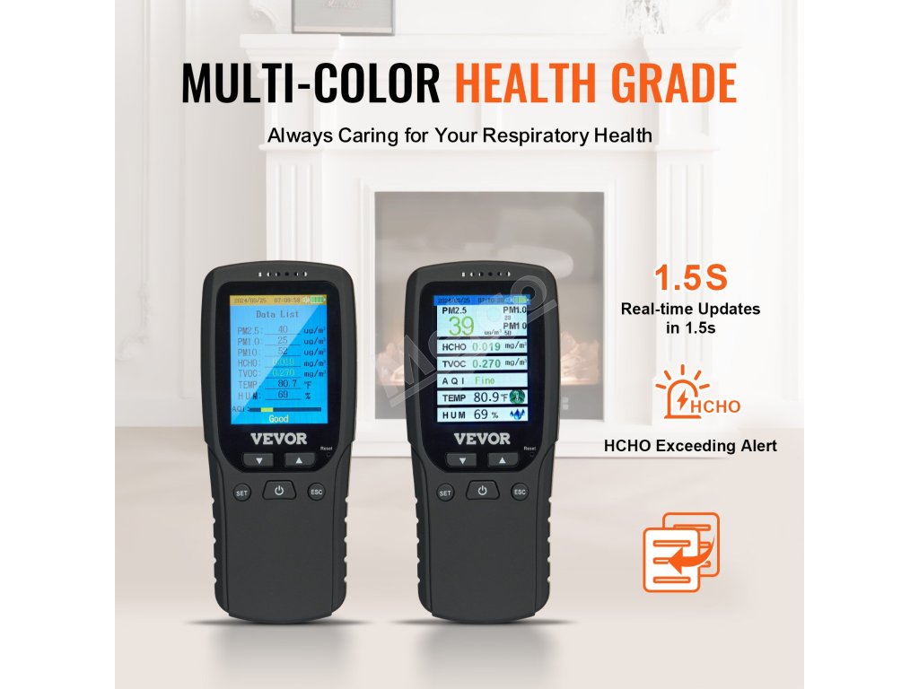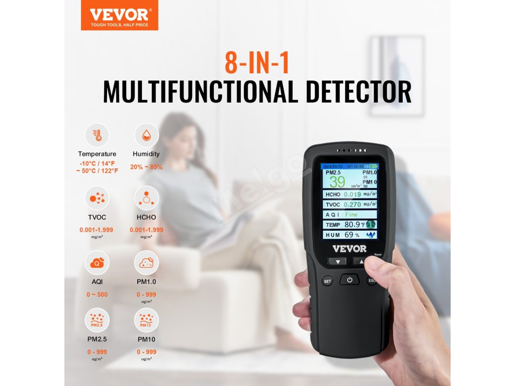 Monitor kvality vzduchu 8 v 1: PM2.5 PM10, HCHO, tepl., vlhkosť, alarm