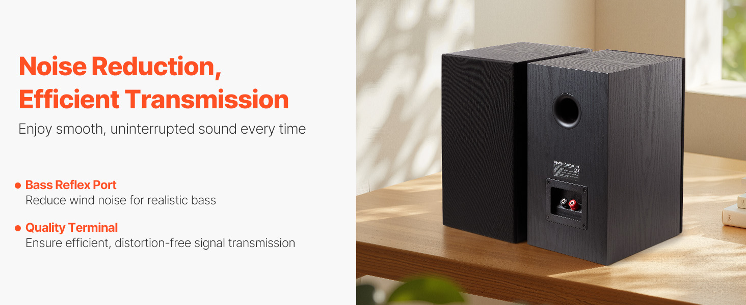 Navrhnuté s basreflexovým portom na zníženie hluku vetra a poskytovanie čistejších, autentickejších basov. V kombinácii s kvalitným terminálom poskytujú naše pasívne stereo reproduktory na poličku rýchly prenos signálu bez skreslenia pre plynulejšie a spoľahlivejšie prehrávanie hudby.