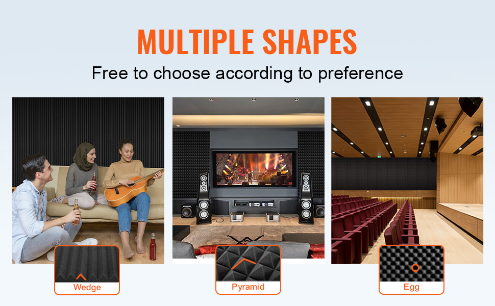 K dispozícii sú jedinečné tvary klinu, pyramídy a vajíčka, ktoré si môžete vybrať podľa svojho priestoru. Textúrovaný povrch zväčšuje plochu peny, čím účinne pohlcuje zvukové vlny na lepšiu zvukovú izoláciu.