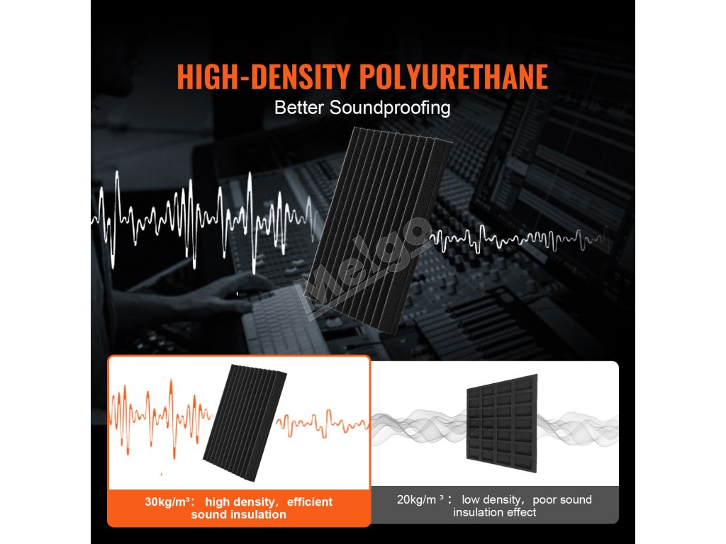 Táto akustická polyuretánová penová doska má hustú konštrukciu, ktorá pomáha znižovať hluk tým, že filtruje nežiaduce zvuky a ozvenu prostredníctvom viacnásobných odrazov. Pri použití v nahrávacích štúdiách zlepšuje kvalitu zvuku, vďaka čomu sú vokály príjemnejšie.