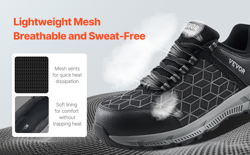 Vetracie otvory zo sieťoviny vo zvršku pomáhajú ochladzovať vaše nohy počas práce a zabraňujú nepríjemným pocitom, ako sú spotené nohy alebo zápach nôh, najmä v lete.