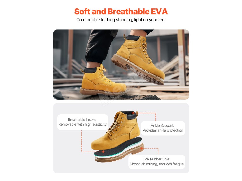 Naša obuv poskytuje plnú ochranu nôh počas celého pracovného dňa. Prešli testami odolnosti proti nárazu a ohybu, aby sa predišlo zbytočným nehodám. Mäkká podšívka v kombinácii s priedušnými sieťovanými vetracími otvormi zaručuje, že vaše nohy zostanú v pohodlí a komforte aj počas dlhých hodín práce.
