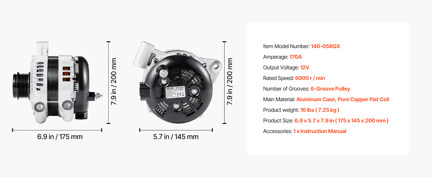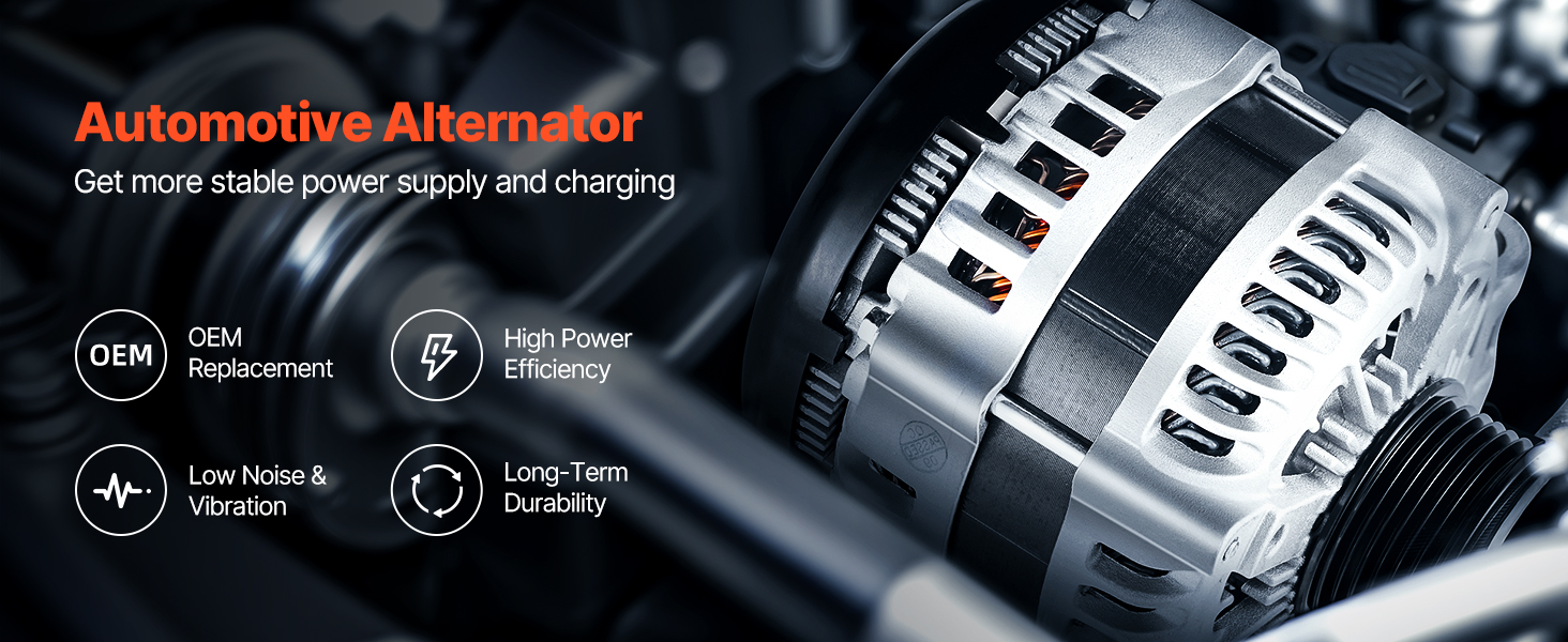 Náš náhradný alternátor je vybavený cievkami z čistej medi pre lepšiu životnosť ako hliník. Hliníkový kryt a chladiaci ventilátor zvyšujú odvod tepla. Poskytuje stabilný výstup 170 A na podporu zariadení s vysokým zaťažením, ako sú klimatizácia a prémiové zvukové systémy.