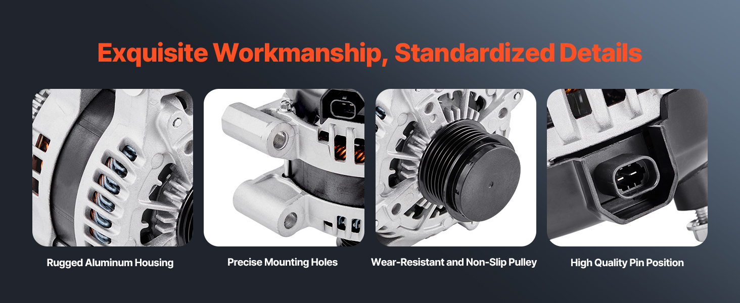 Každý automobilový náhradný alternátor je precízne skonštruovaný s jemným opracovaním a rezaním. Je skonštruovaný tak, aby správne sedel a dlhšie vydržal, čím poskytuje spoľahlivú náhradu za váš pôvodný diel.