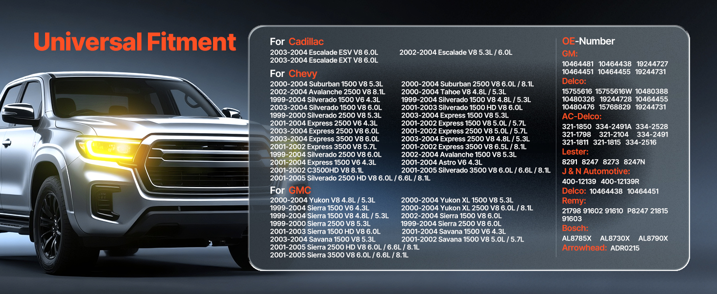 Alternátor pre Cadillac Escalade/Suburban/Yukon V8 4.8L–6.0L 2000–2004