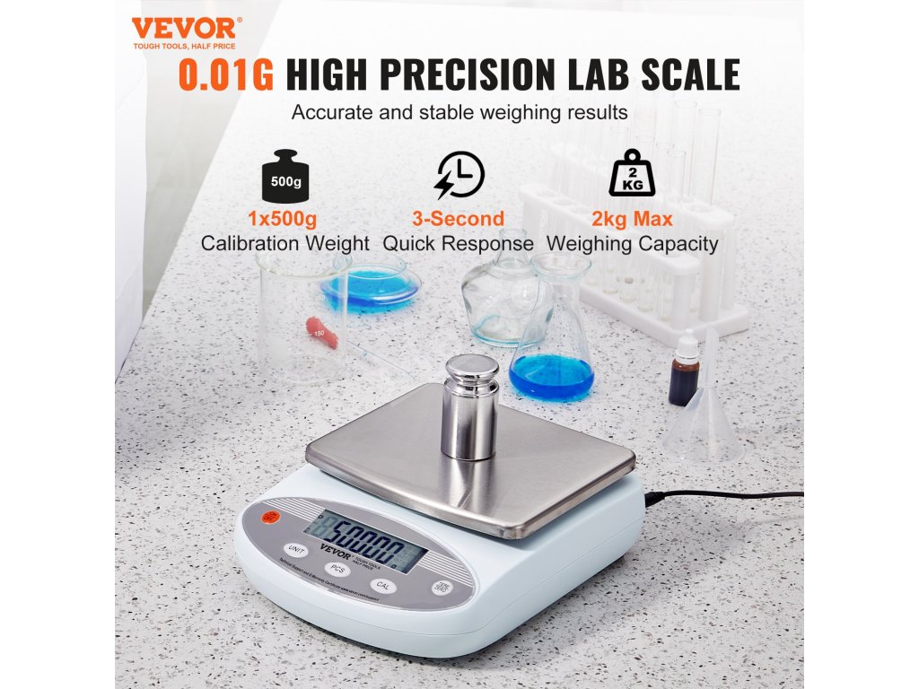 Analytická elektronická váha 2000 g × 0,01 g, 13 jednotiek, s lcd