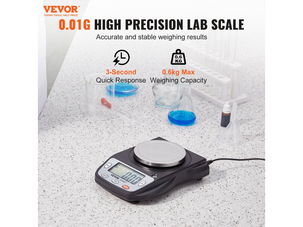 Analytická elektronická váha 600 g × 0,01 g, 6 jednotiek, lcd displej