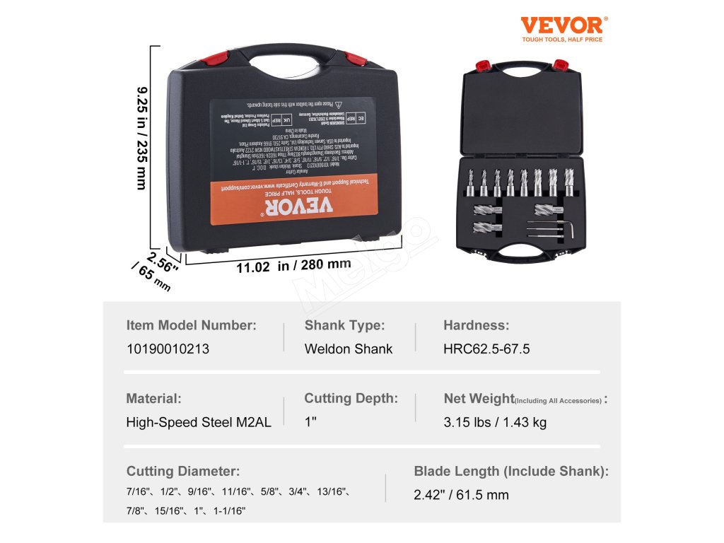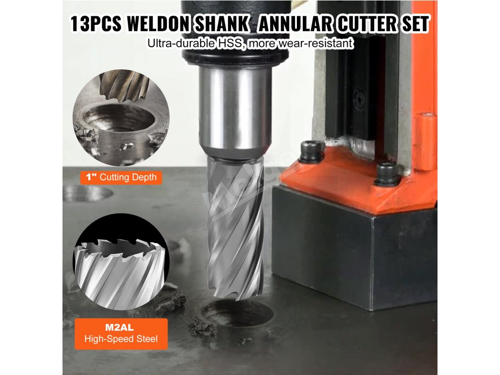 Sada korunkových vrtákov, 13 ks, Ø 1,1–2,7 cm, hĺbka 2.5 cm hss