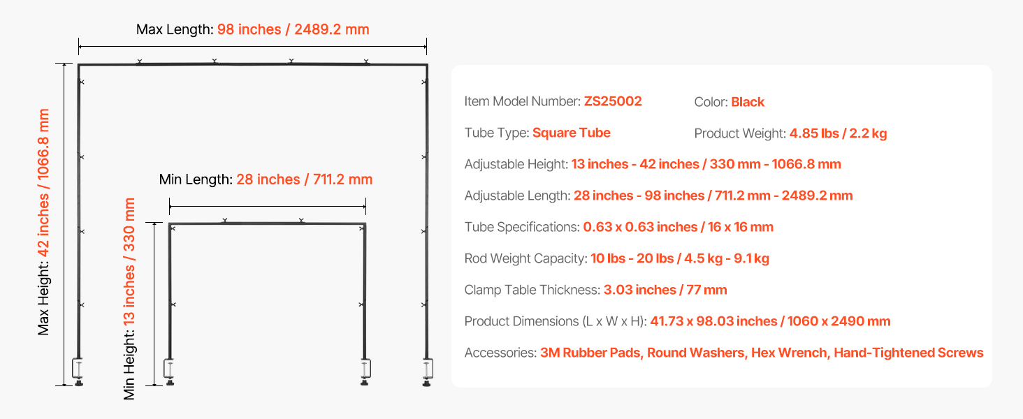 Vďaka ochranným podložkám na oboch koncoch je tento oceľový stolový oblúkový stojan odolný proti poškriabaniu. Je vyrobený z 3-palcovej hrubej ocele, je odolný voči tlaku a nastaviteľný (20 - 70 palcov). Jeho prášková povrchová úprava odoláva korózii a dokonale sa kombinuje s tmavým nábytkom.