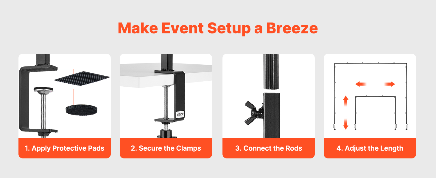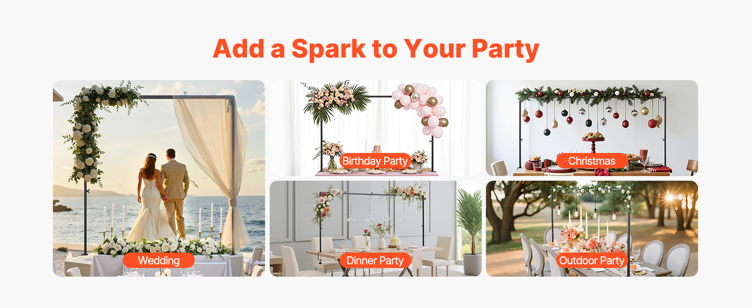 Zaveste svetlá, podoprite balóny alebo nastavte vonkajší baldachýn pre rýchle nastavenie. Ideálne na svadby, párty a sviatky. V interiéri alebo exteriéri táto tyč vytvorí ohromujúcu atmosféru na akejkoľvek udalosti.