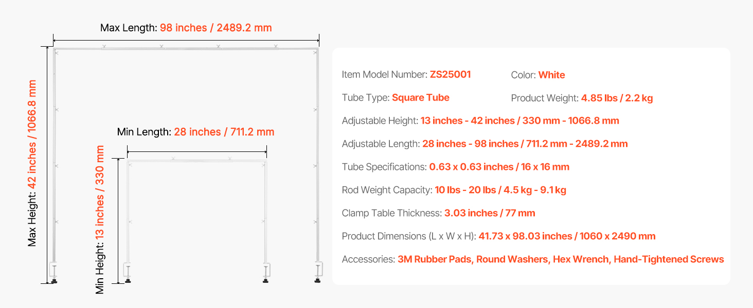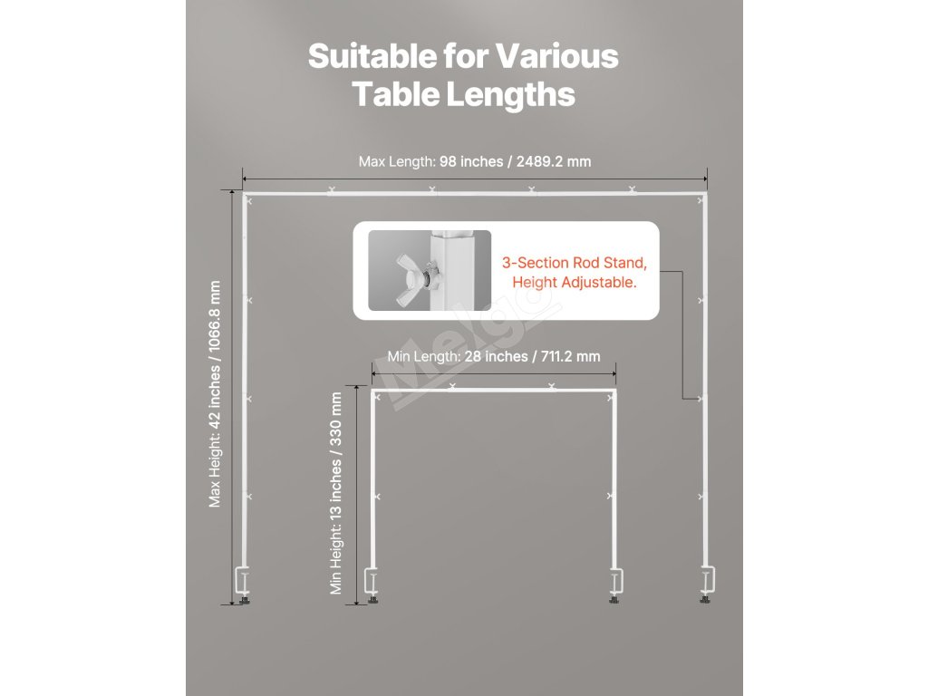 Vďaka ochranným podložkám na oboch koncoch je tento oceľový stolový oblúkový stojan odolný proti poškriabaniu. Je vyrobený z 3-palcovej hrubej ocele, je odolný voči tlaku a nastaviteľný (20 - 70 palcov). Jeho prášková povrchová úprava odoláva korózii a dokonale sa kombinuje s tmavým nábytkom.