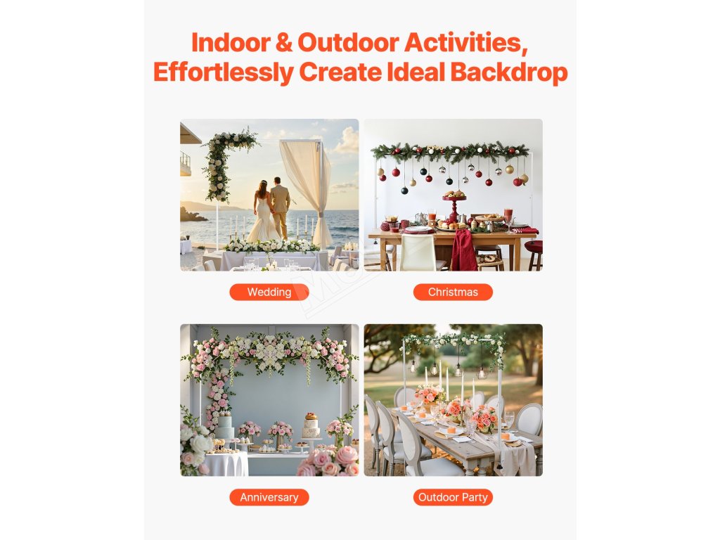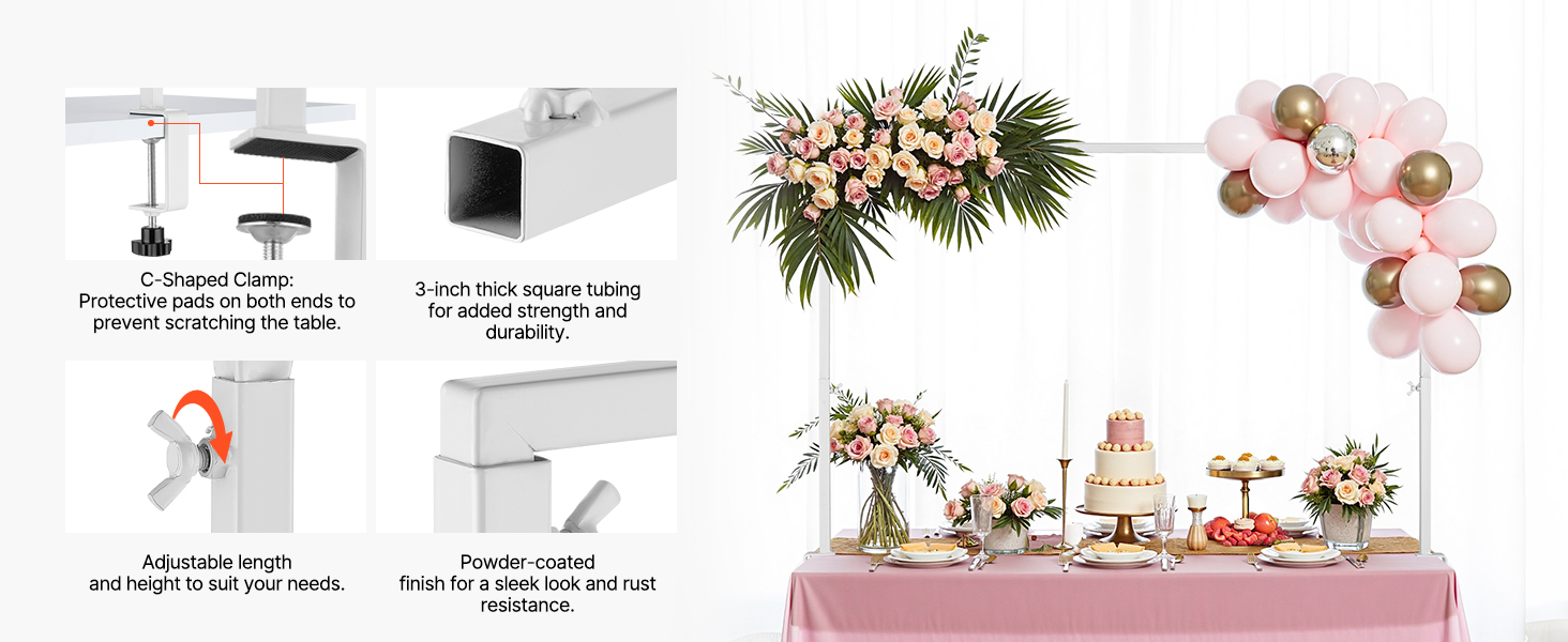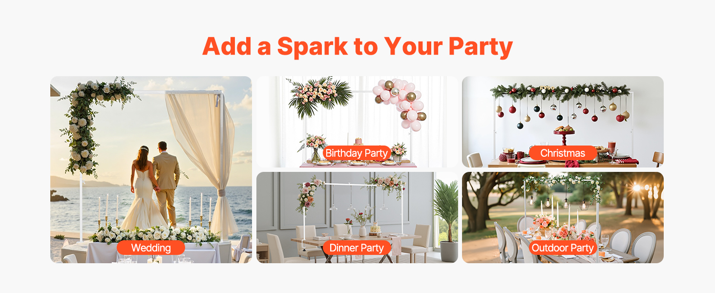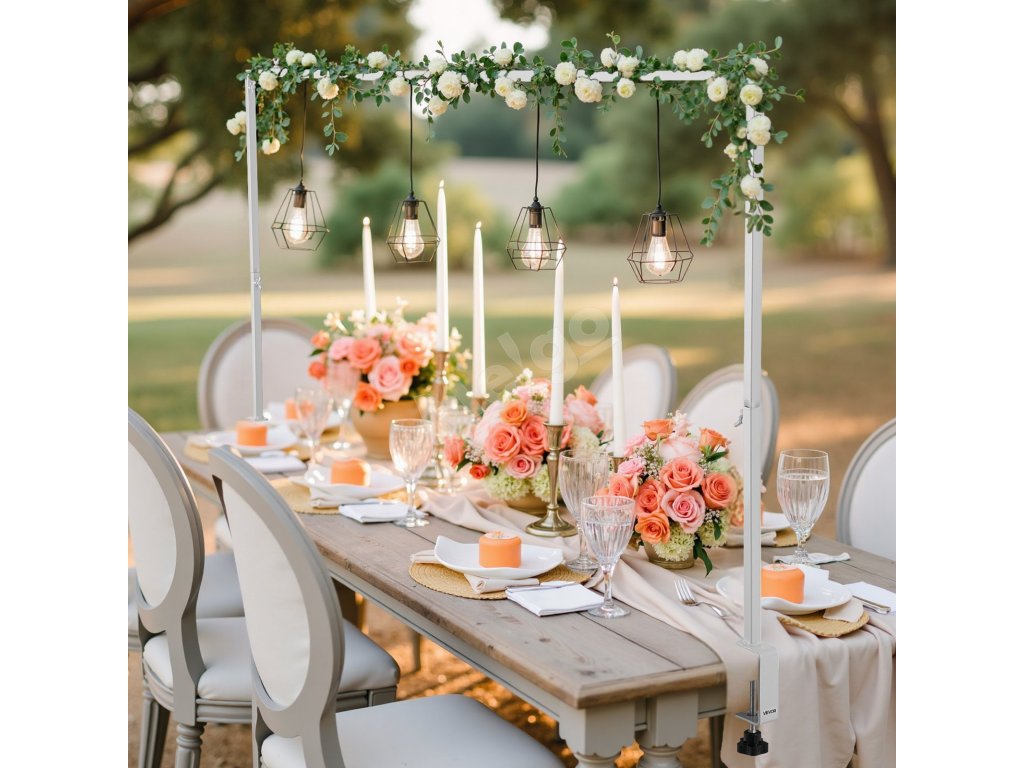 Zaveste svetlá, podoprite balóny alebo nastavte vonkajší baldachýn pre rýchle nastavenie. Ideálne na svadby, párty a sviatky. V interiéri alebo exteriéri táto tyč vytvorí ohromujúcu atmosféru na akejkoľvek udalosti.