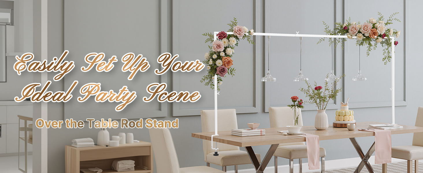 Tento robustný stojan na stolové tyče udrží dekorácie do hmotnosti 10 - 20 libier (4,5 kg - 9,1 kg) bez toho, aby sa prevrátili. Vďaka trom nastaviteľným výškam sa hodí na rôzne veľkosti stolov a je vhodný na svadby, narodeniny a iné podujatia. Kompletné príslušenstvo a úložná taška na jednoduché skladovanie, prepravu a ochranu.