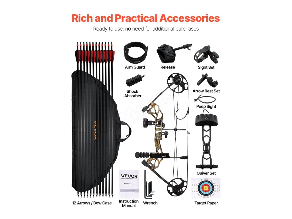 Súprava lukostreleckého luku a šípov sa dodáva s množstvom praktického príslušenstva, ktoré zahŕňa všetko potrebné na lukostreľbu, ako sú rôzne typy šípov a zameriavač. Toto príslušenstvo zvyšuje presnosť aj estetický dojem z lukostreľby.