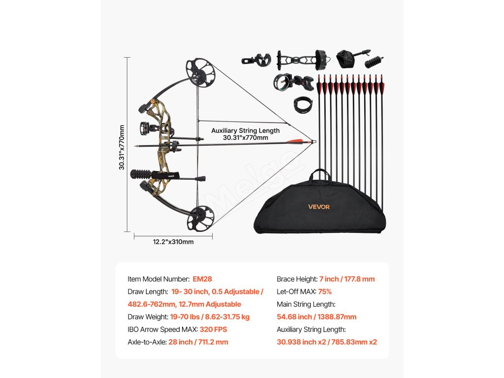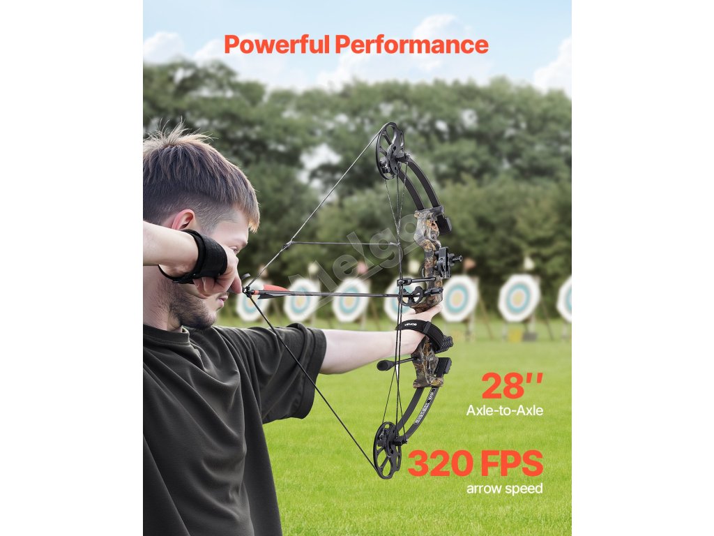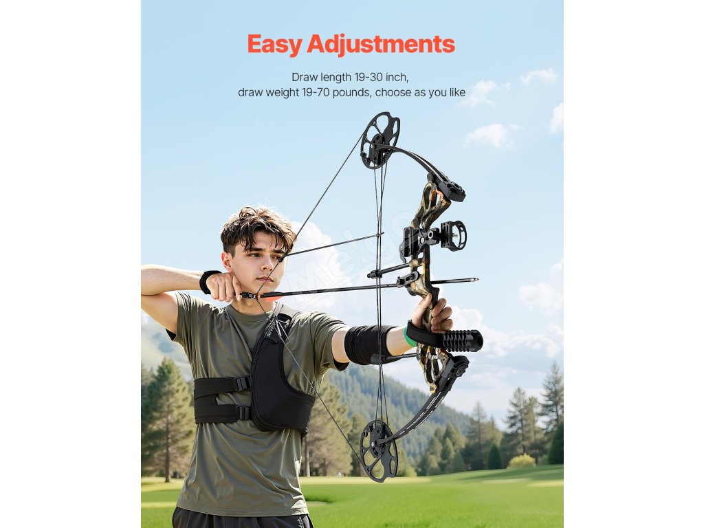 Kladkový luk nastaviteľný 19–30 in, 19–70 lbs, pravá, s šípmi, 320 fps